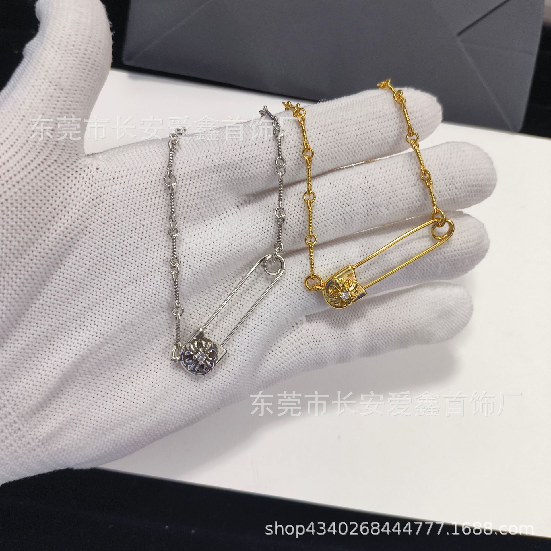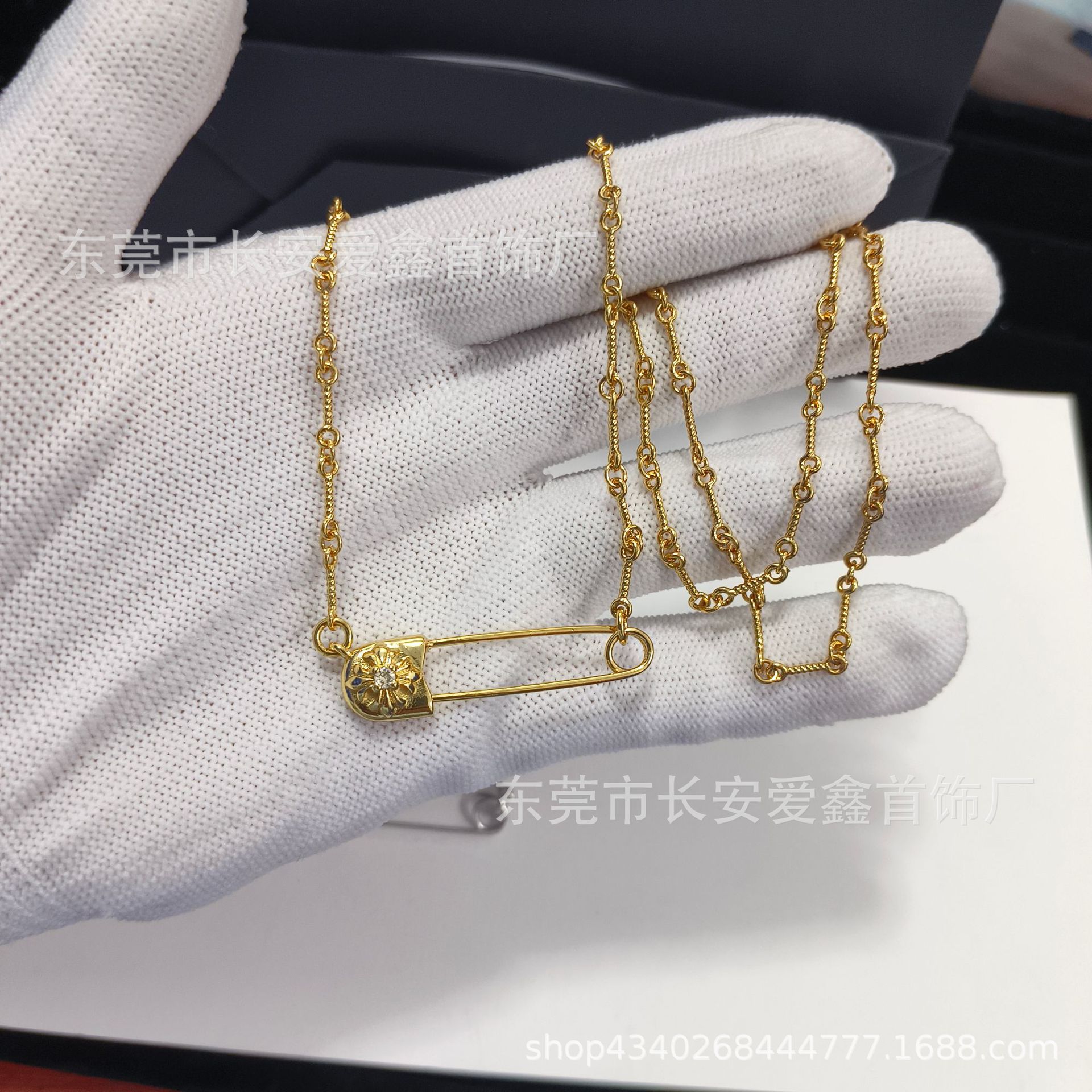 クロクロの新作の金色のダイヤモンドの十字架のネックレスの潮流の個性のファッションの男女の百合の甘いクールなギャルの装飾