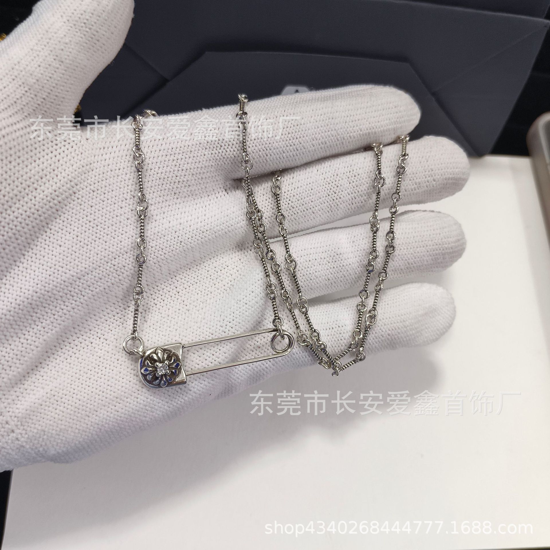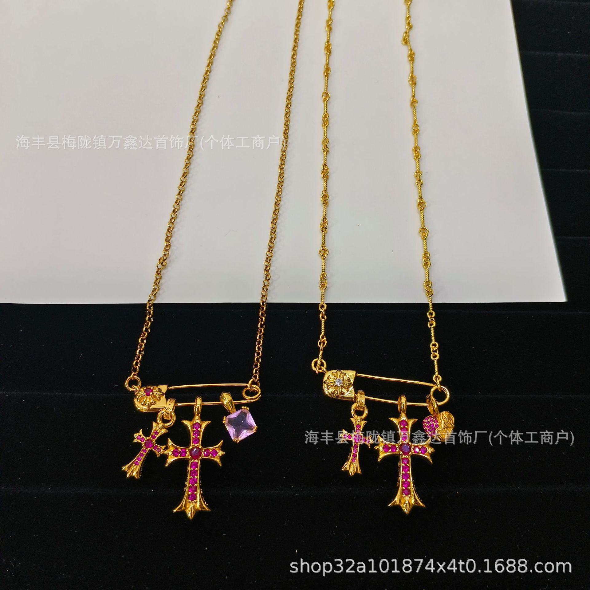 Crowe の新しいダブルクロスピンピンクフルダイヤモンドネックレストレンディなヒップホップ男性と女性のシンプルなファッション多用途ジュエリー