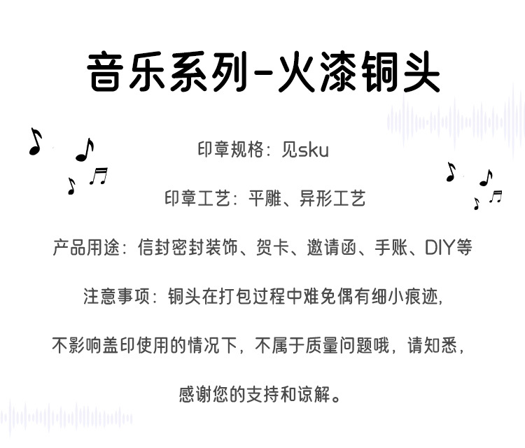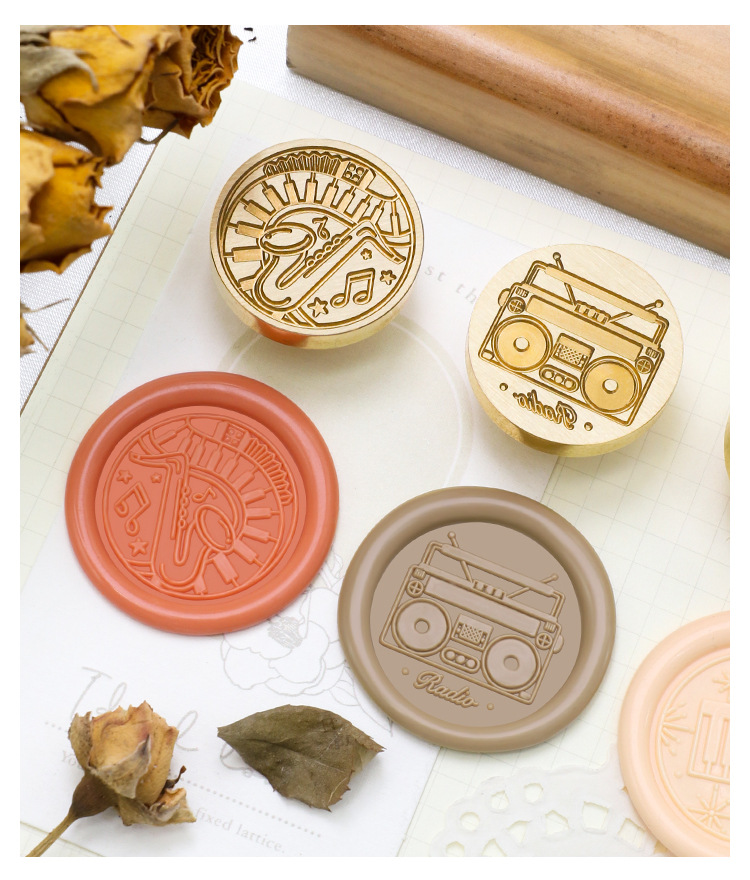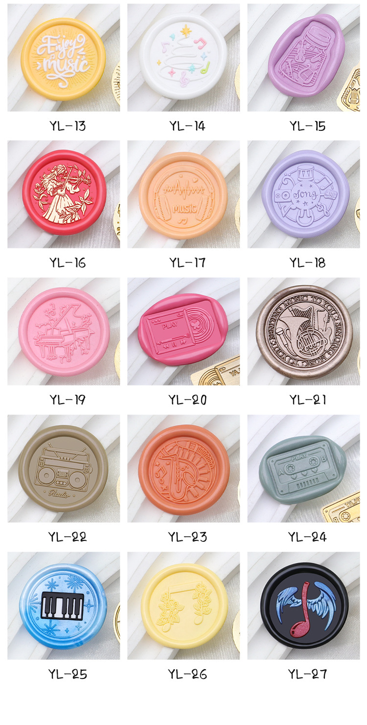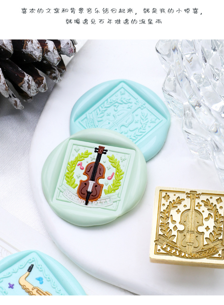 新しいファイアペイントシールヘッド音楽シリーズファイアペイント銅ヘッド楽器ピアノバイオリンノート封筒口シールヘッド