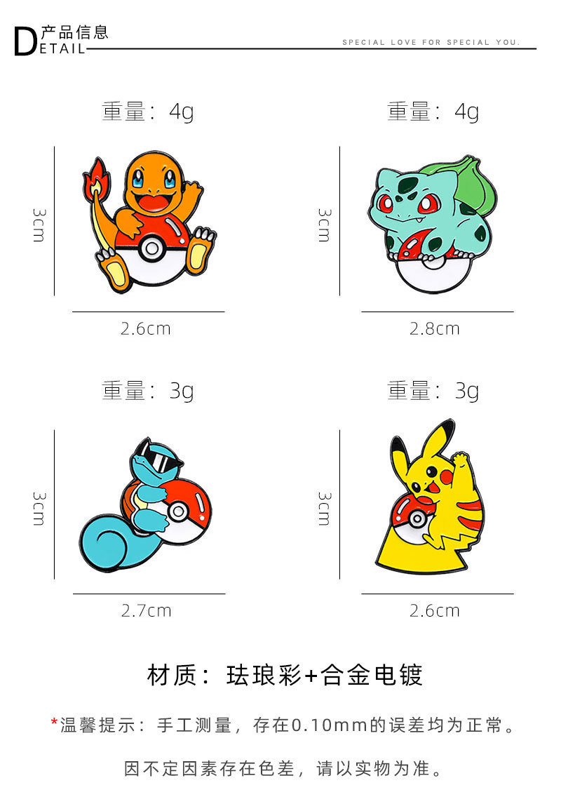 动漫宝可梦神奇宝贝周边胸针皮卡丘小火龙妙蛙种子杰尼龟徽章