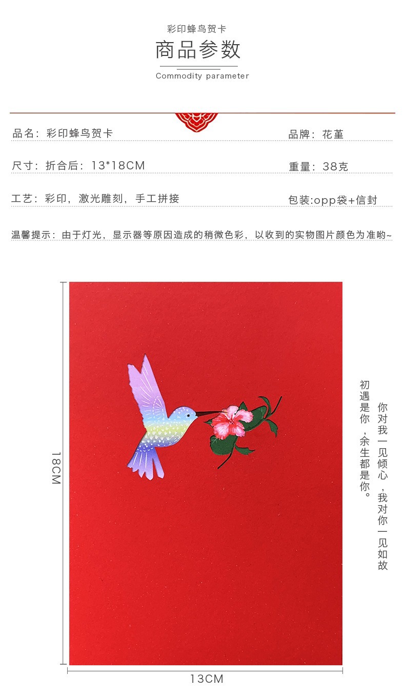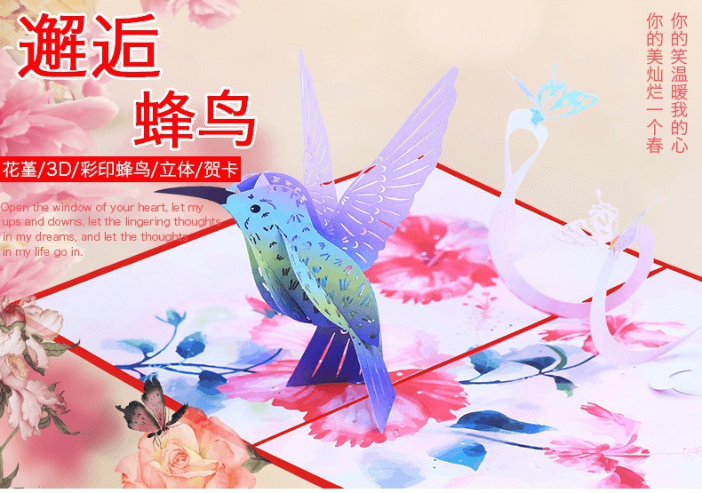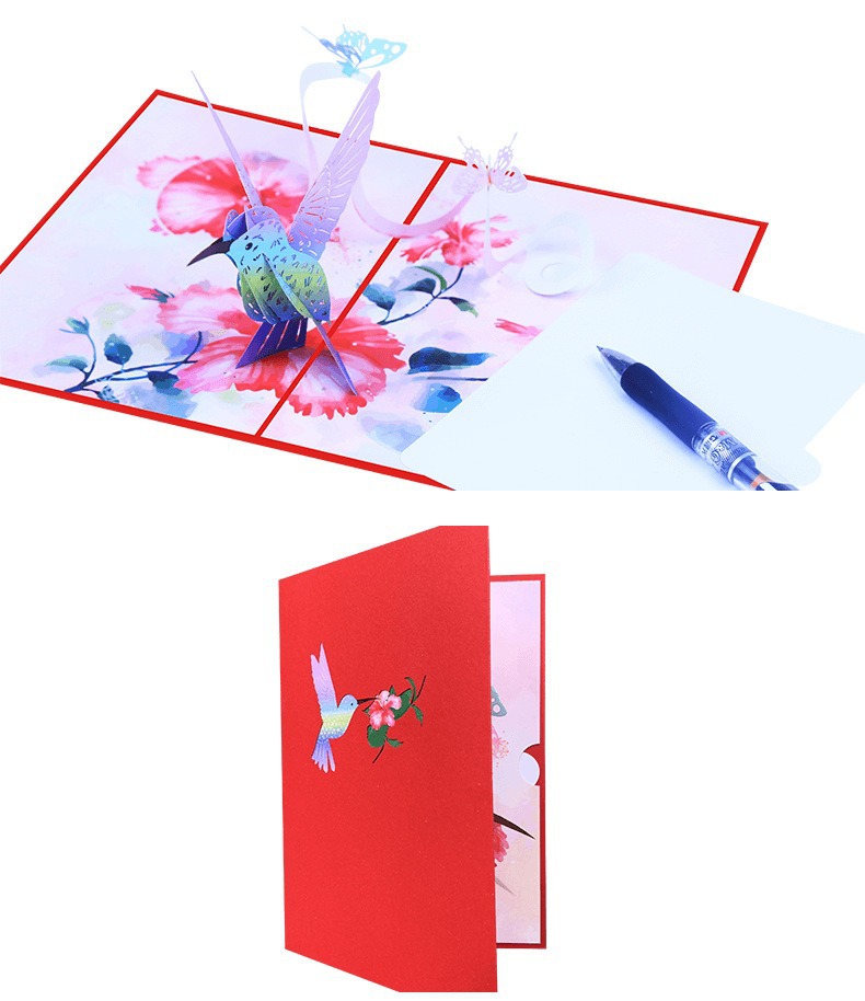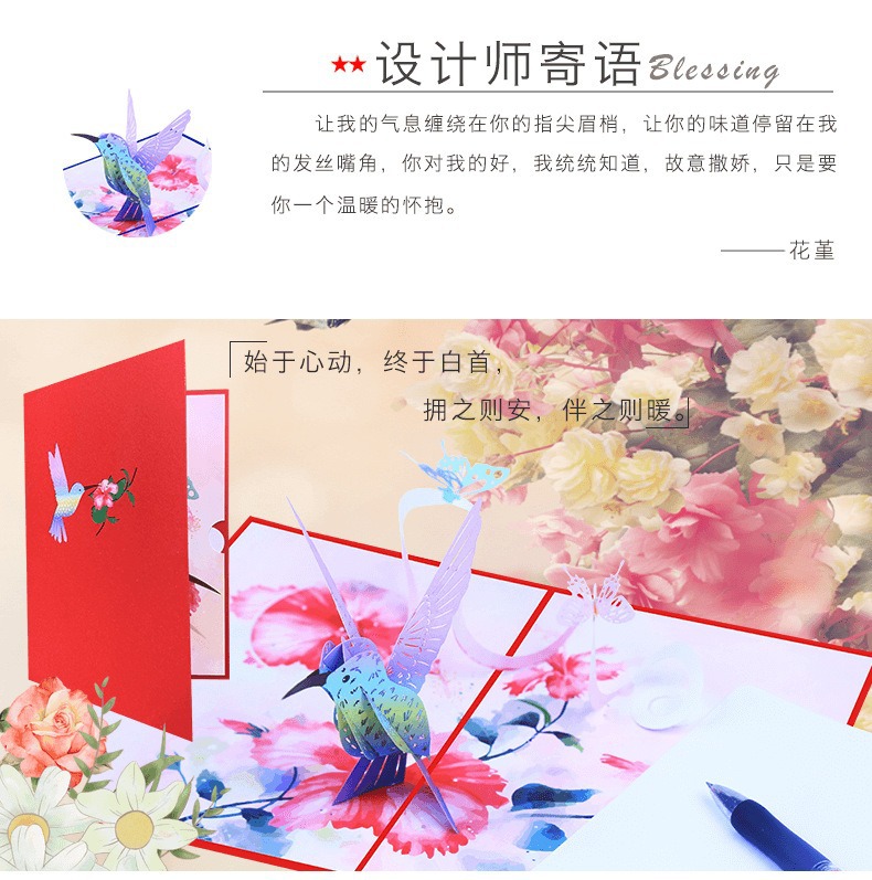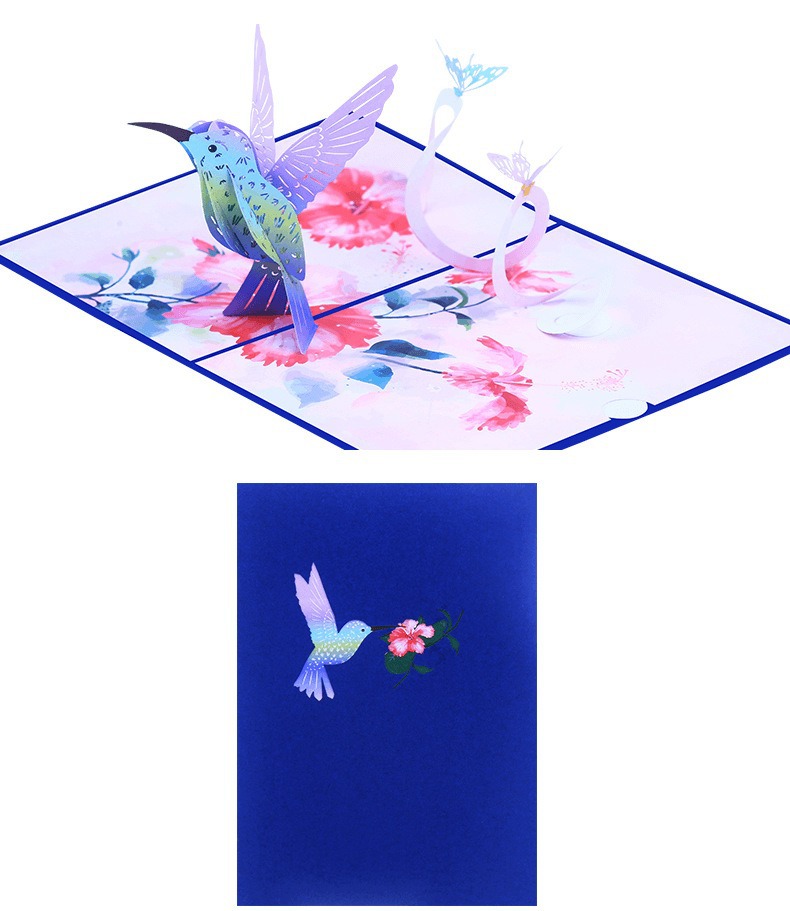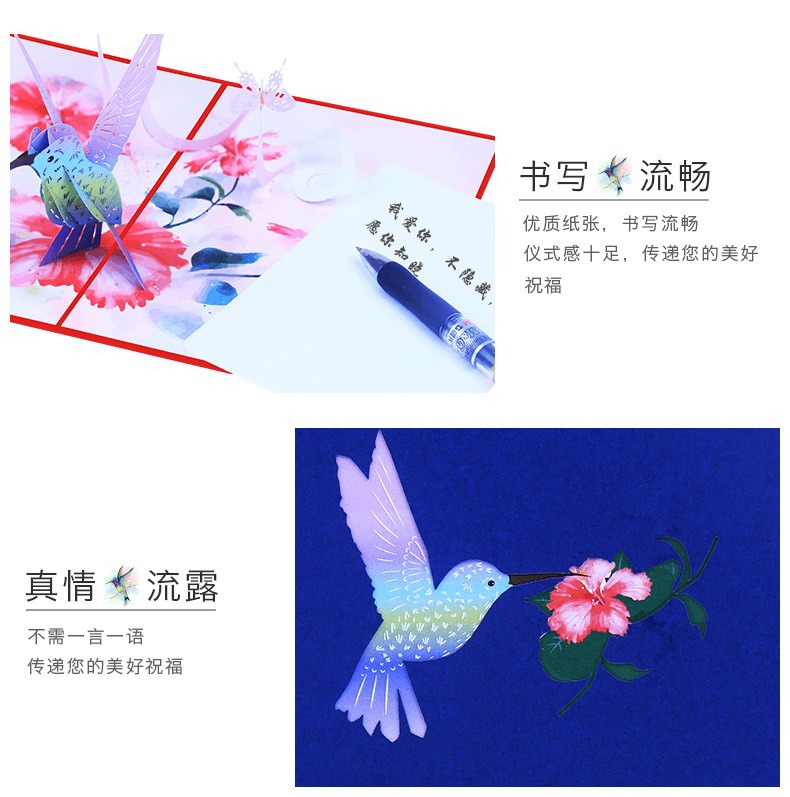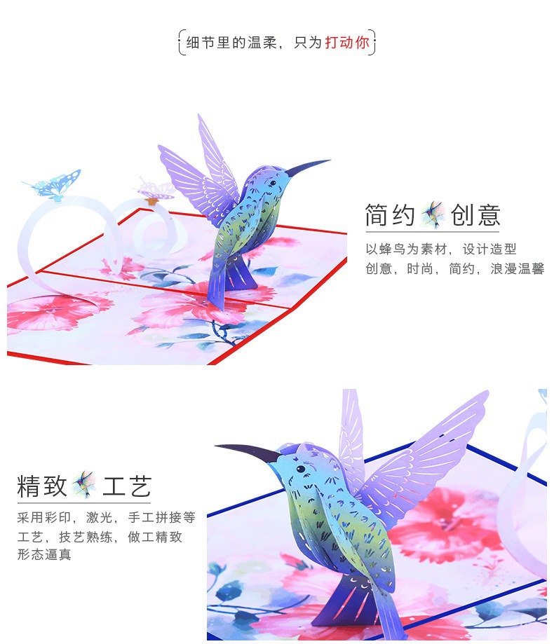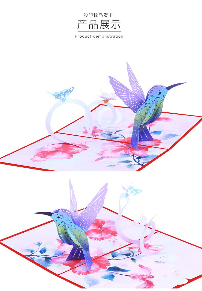 クリエイティブカラー印刷紫色ハチドリ蝶立体紙彫刻透かし彫り3dグリーティングカード手書き誕生日祝福小鳥祝日カード