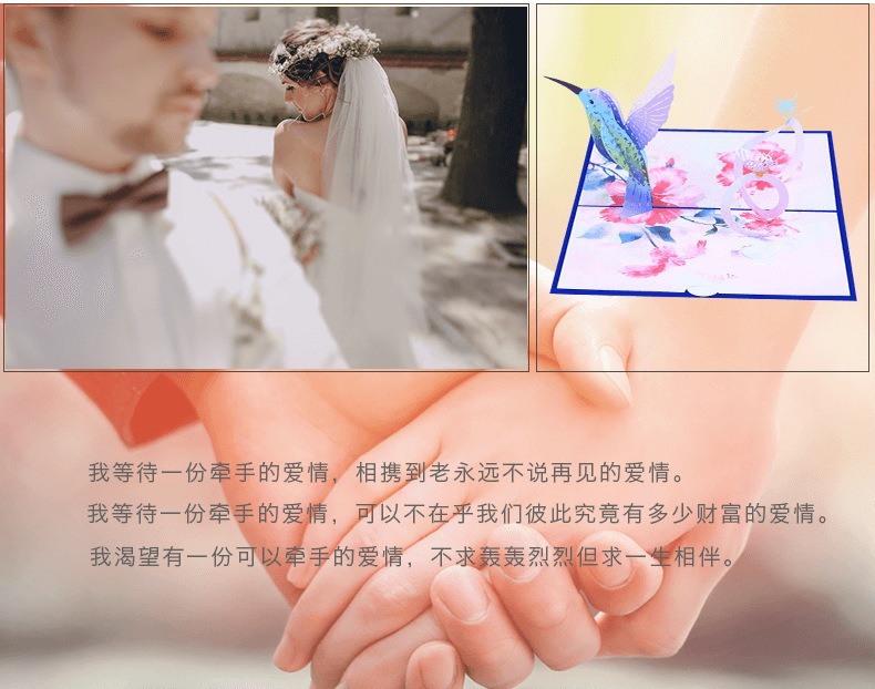 新しい手作り愛蝶バレンタインデーグリーティングカードins風創意ハート型3d小清新プレゼント祝福カード