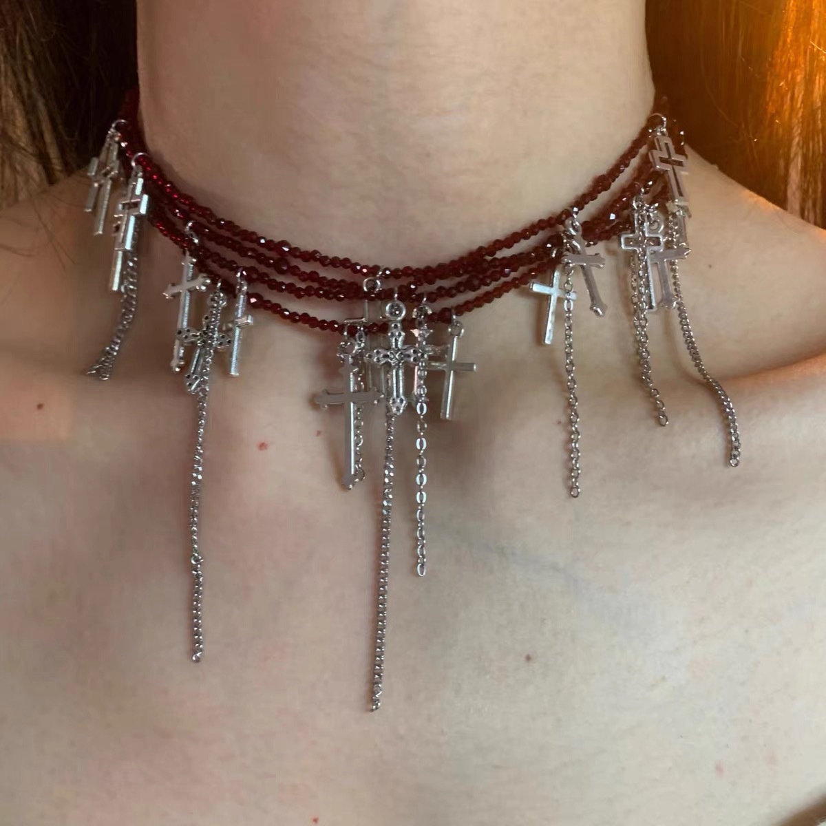 重工十字架オリジナル真珠ネックレス小衆デザインギャル鎖骨多層重ね付けチョーカーネックチェーン