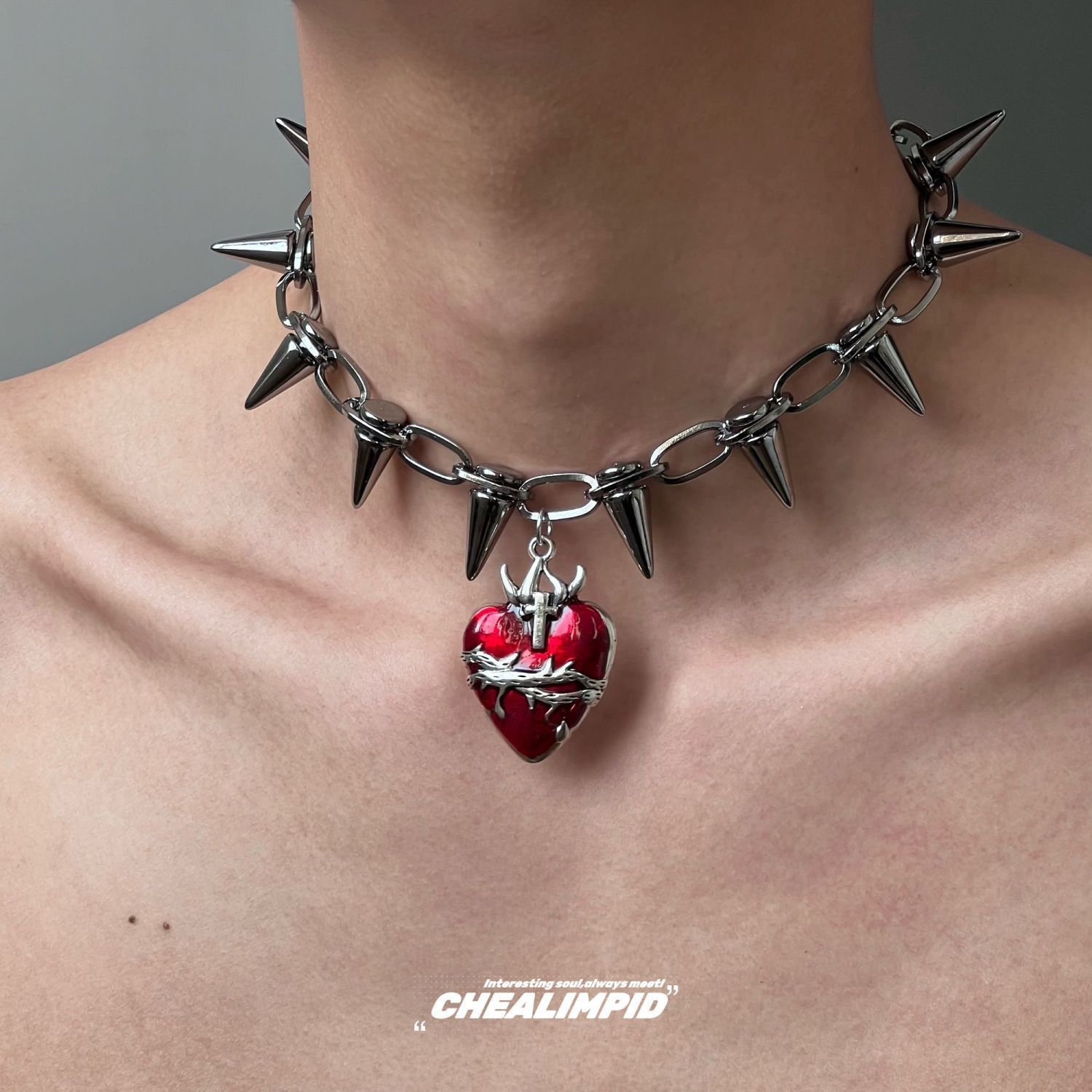 禁固愛リベットパンク暗黒ネックレスy2k小衆ヒップホップ街頭潮流男女暗黒系鎖骨鎖