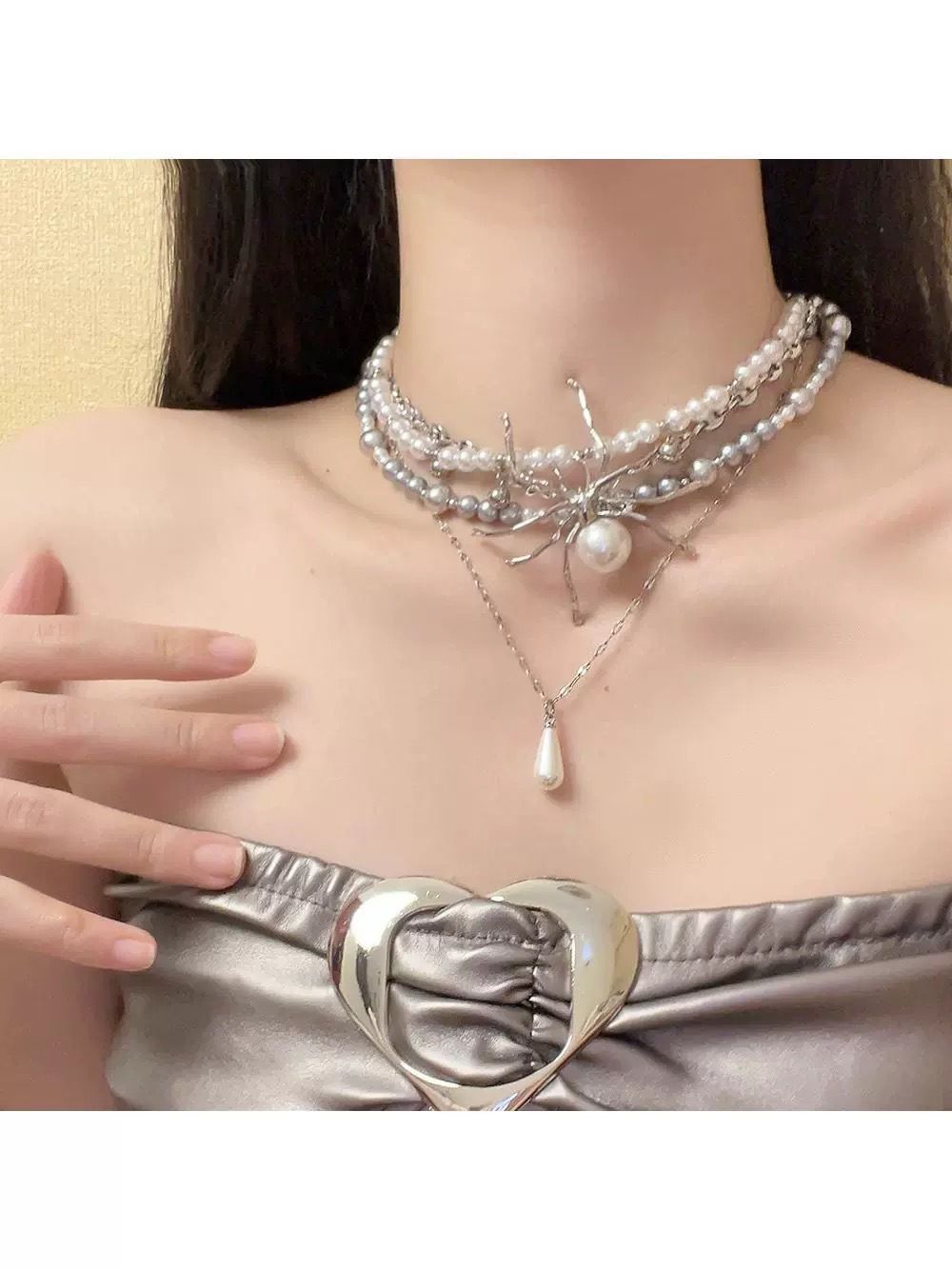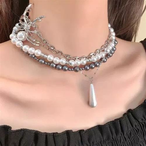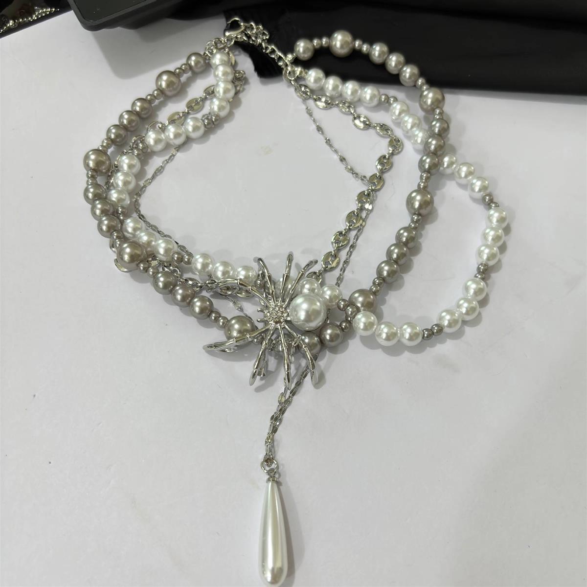 甘いクールなギャルの真珠の重工業のクモの多層は鎖の鎖の欧米のファッション感の小さい大衆の設計のネックレスをかぶせます。