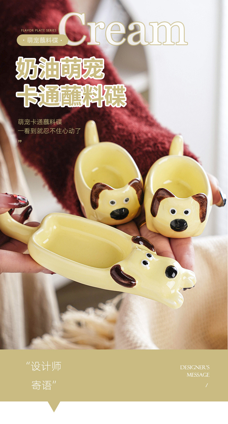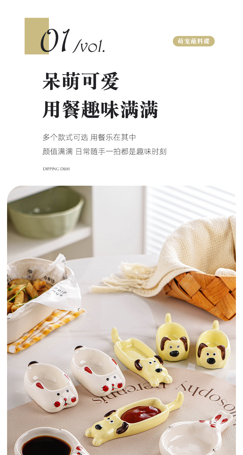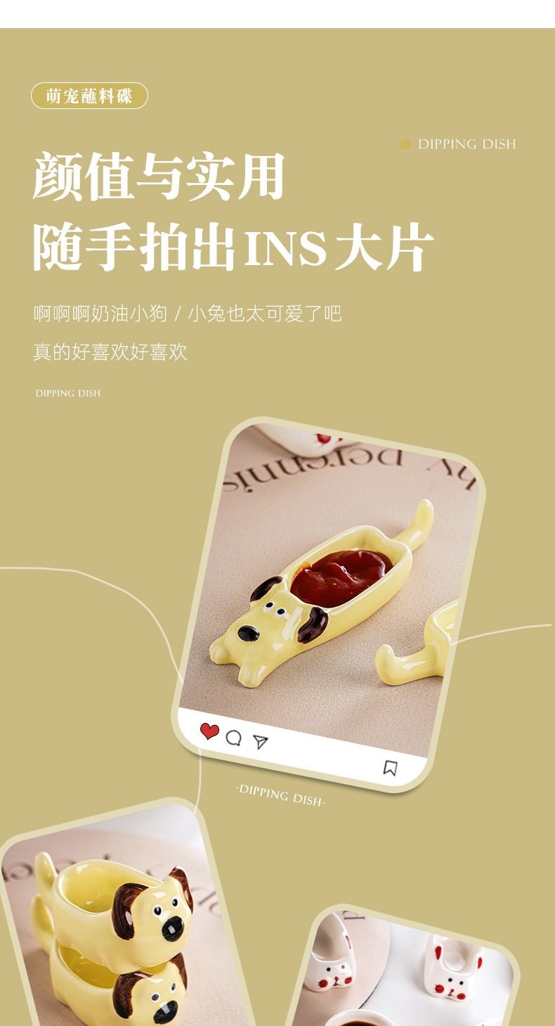 Insかわいいパチャ犬ディップ皿陶磁器食器小皿かわいい家庭用調味皿醤油皿酢皿