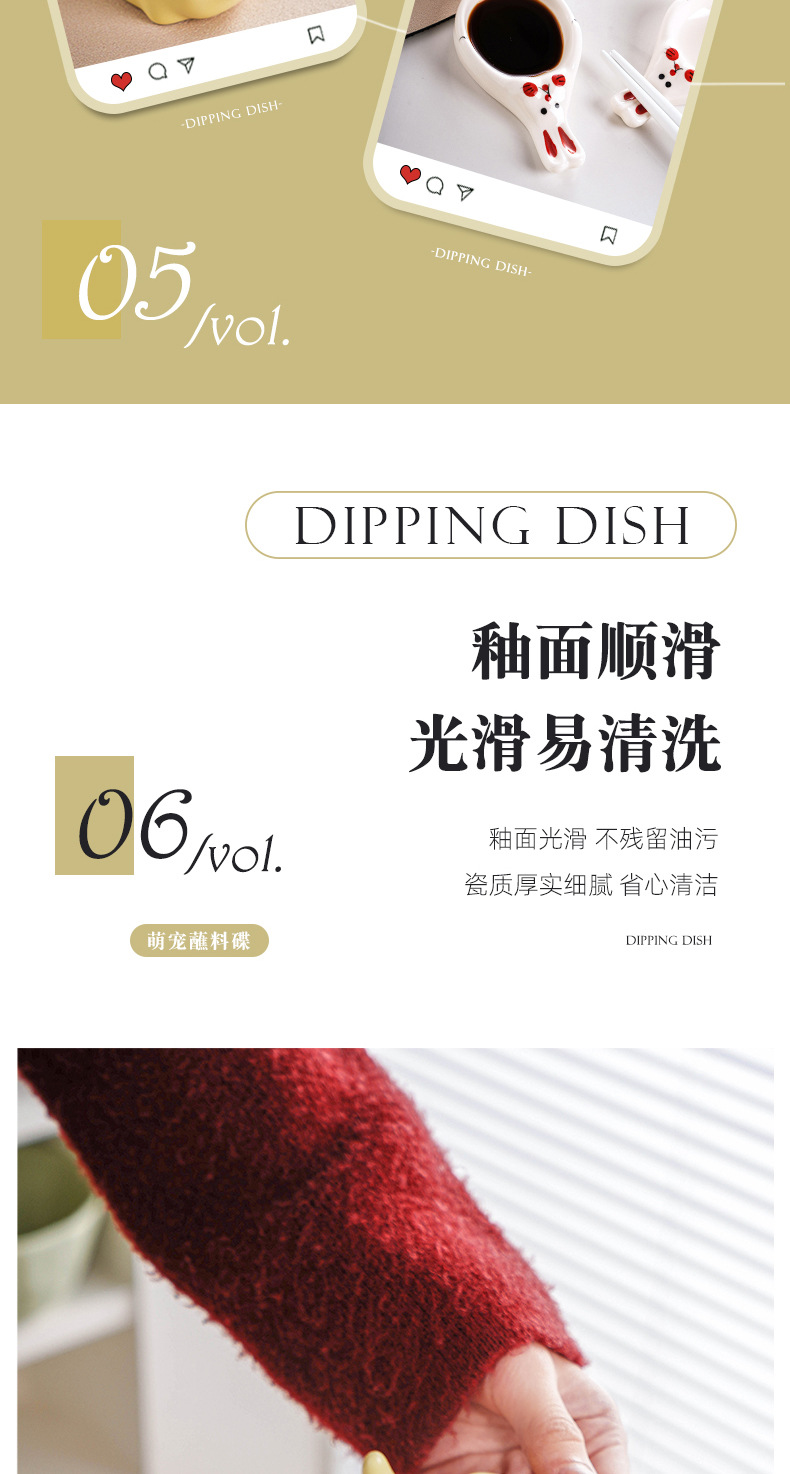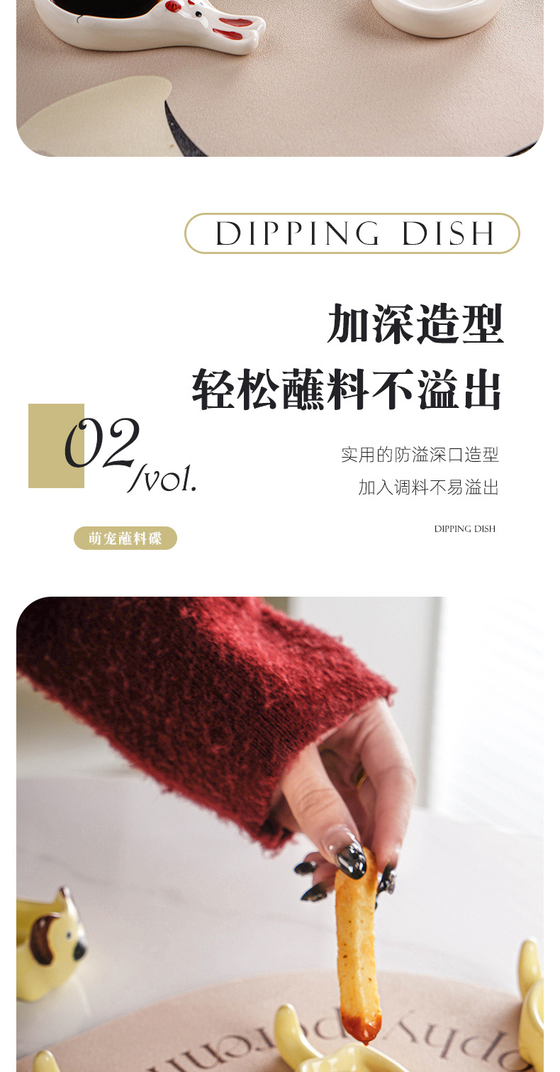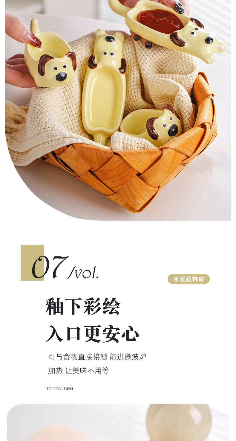 Insかわいいパチャ犬ディップ皿陶磁器食器小皿かわいい家庭用調味皿醤油皿酢皿