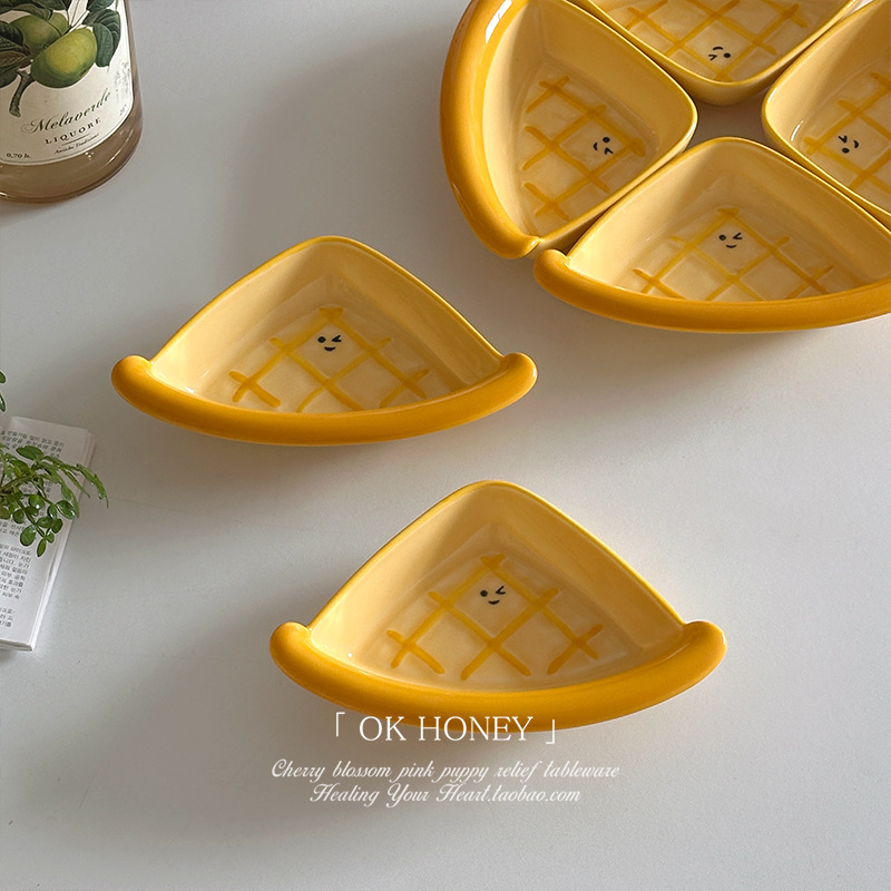 可爱烘焙wink三角派陶瓷味碟ins釉下彩调料碟蘸料碟零食小碟子