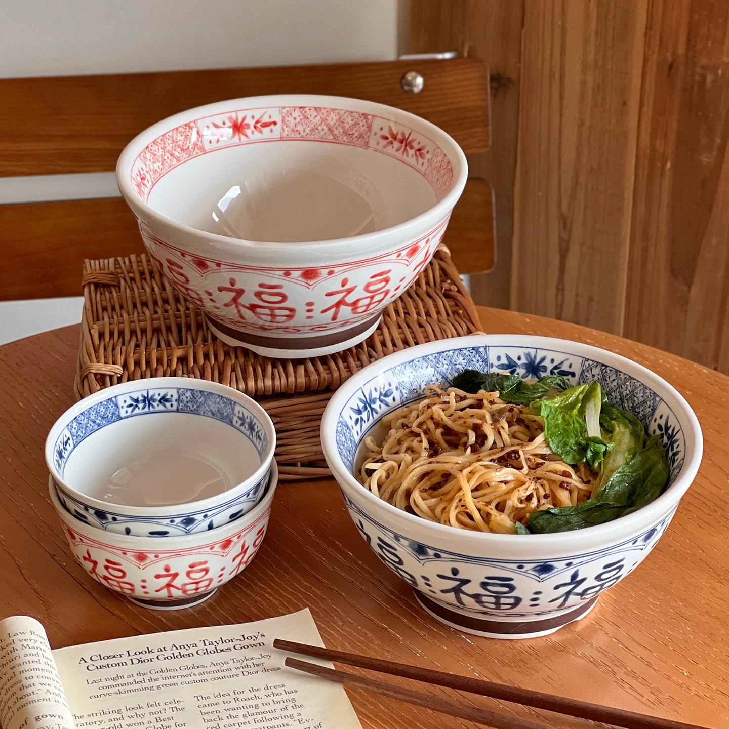 中式福字碗家用米饭碗陶瓷面碗大碗汤碗面条碗螺蛳粉碗釉下彩餐具
