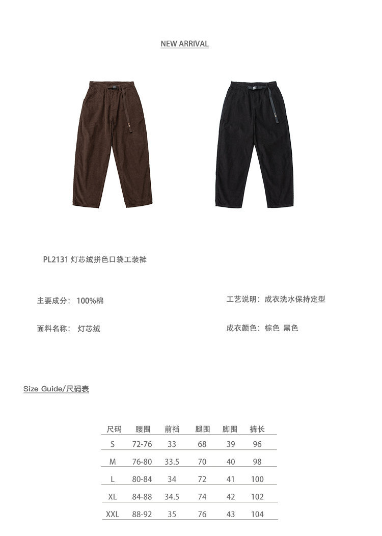 北界の紳士服のアメリカのファッションブランドの2024秋の新型の色合わせのポケットのスーツのズボンの男性のコーデュロイのカジュアルなズボン