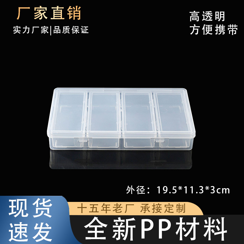 4格透明pp塑料盒文具零件包装盒饰品展示首饰盒桌面收纳盒渔具盒