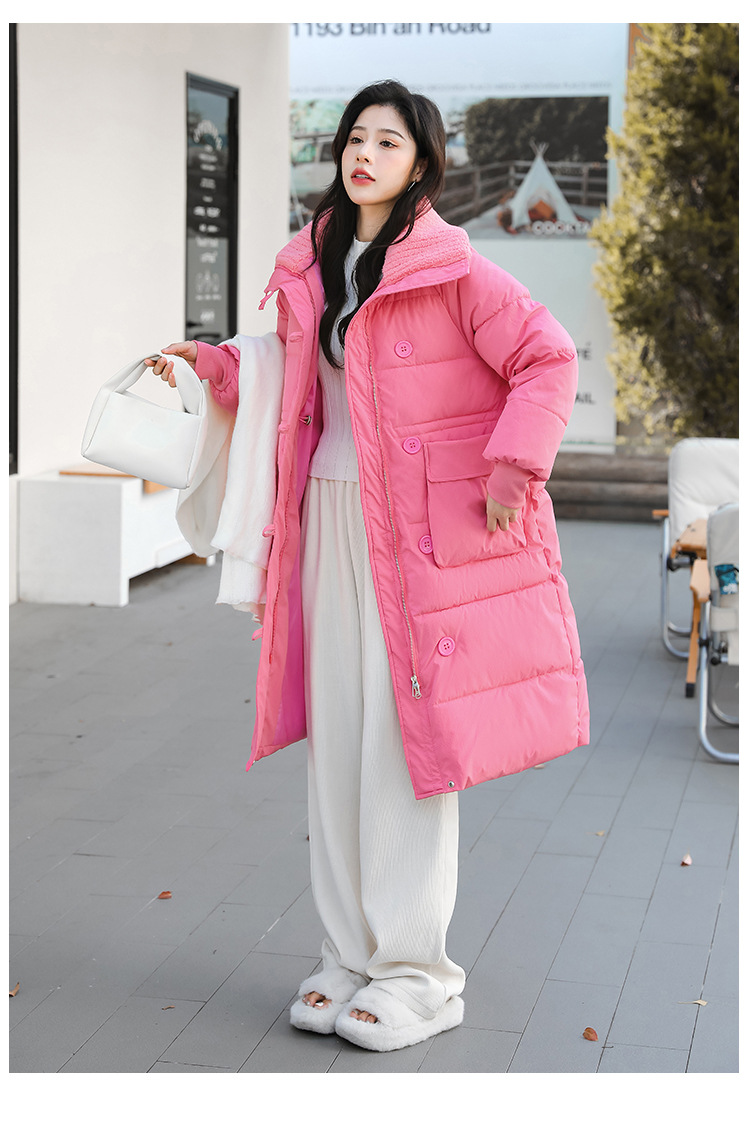 2025年冬新作 厚手ロングダウンコットンジャケット カップル男女兼用 スタンドカラー フード付き 暖かい ゆったり 外出着