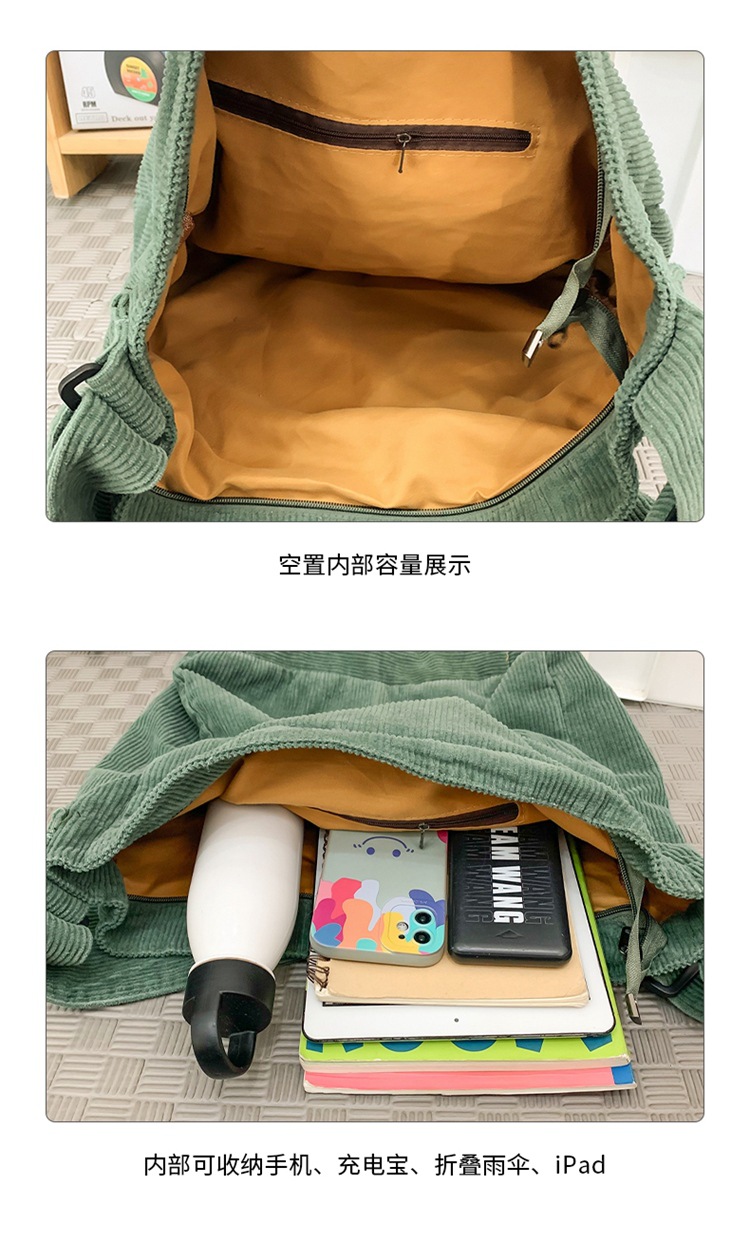 新型香港風レトロコーデュロイシングルショルダー女子学生大容量カバン男百合通勤トートバッグ