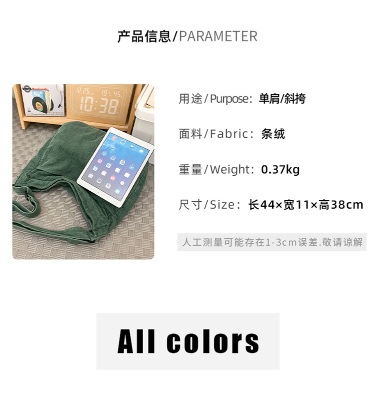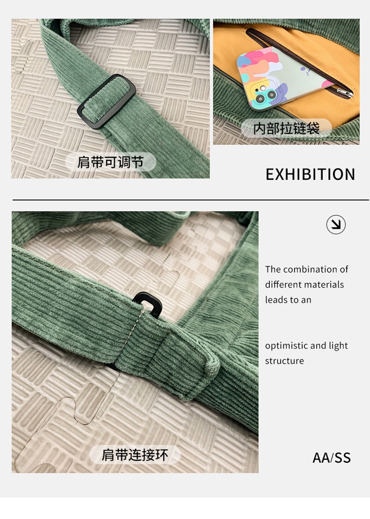 韓国版キャンパス文芸条毛斜めショルダーバッグ女子学生補習袋大容量カジュアルコーデュロイシングルショルダーバッグ