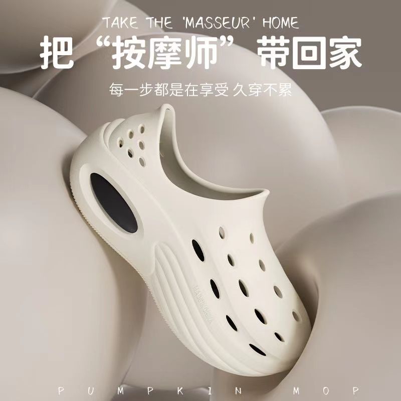 2025新型の穴の靴の厚い底の男性の夏の滑り止めは糞感を踏んで通気します。
