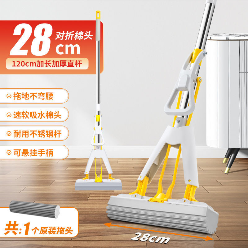 家庭用モップ、手洗い不要、怠け者用コットンモップ、プッシュプル折りたたみ式水絞り乾湿両用吸水スポンジマジックモップ