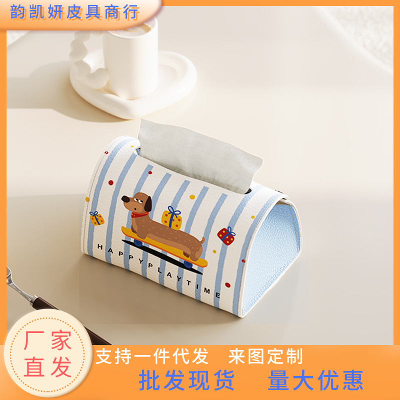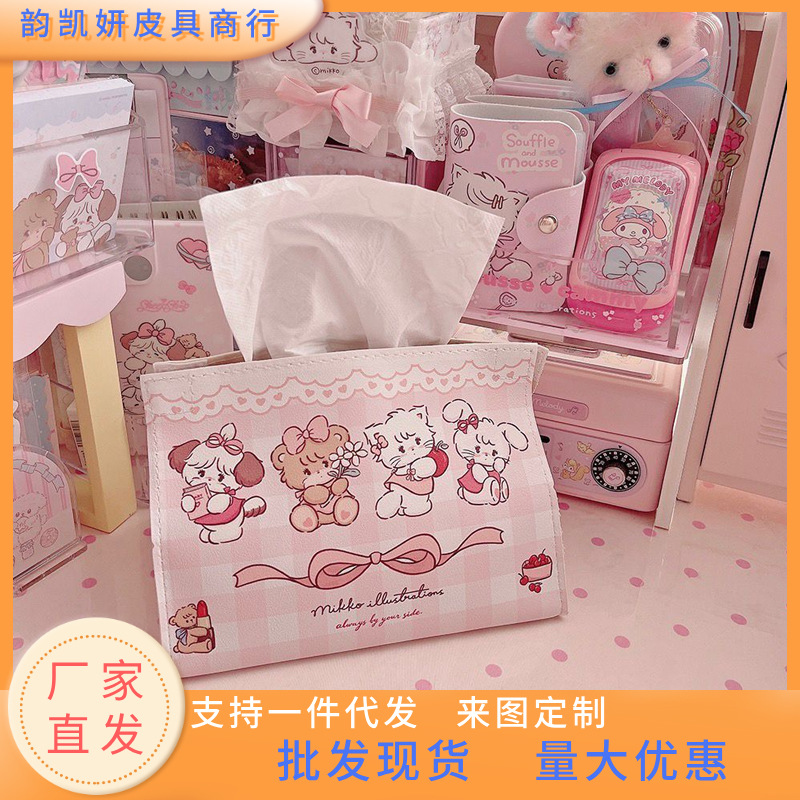 新しいアニメかわいい革ティッシュボックス家庭用デスクトップキッチン多機能収納高颜値引き出し箱卸売り