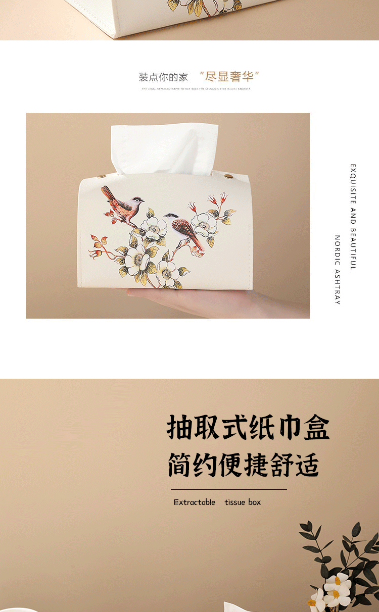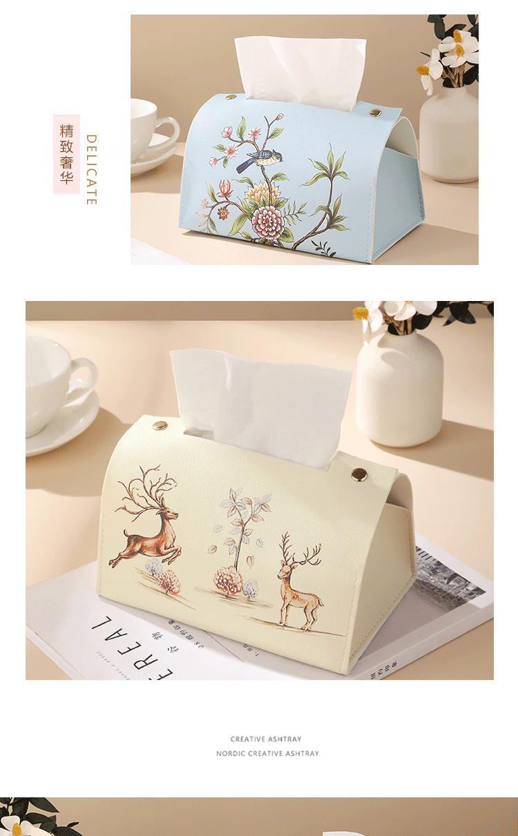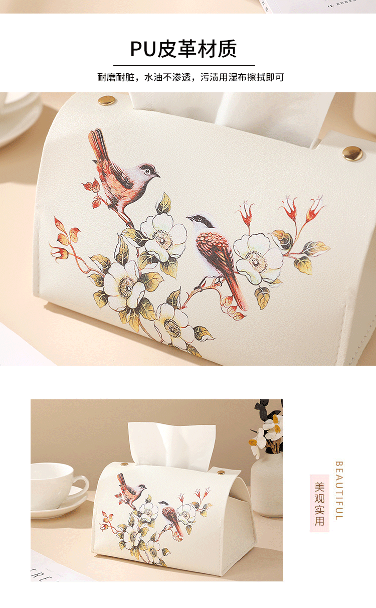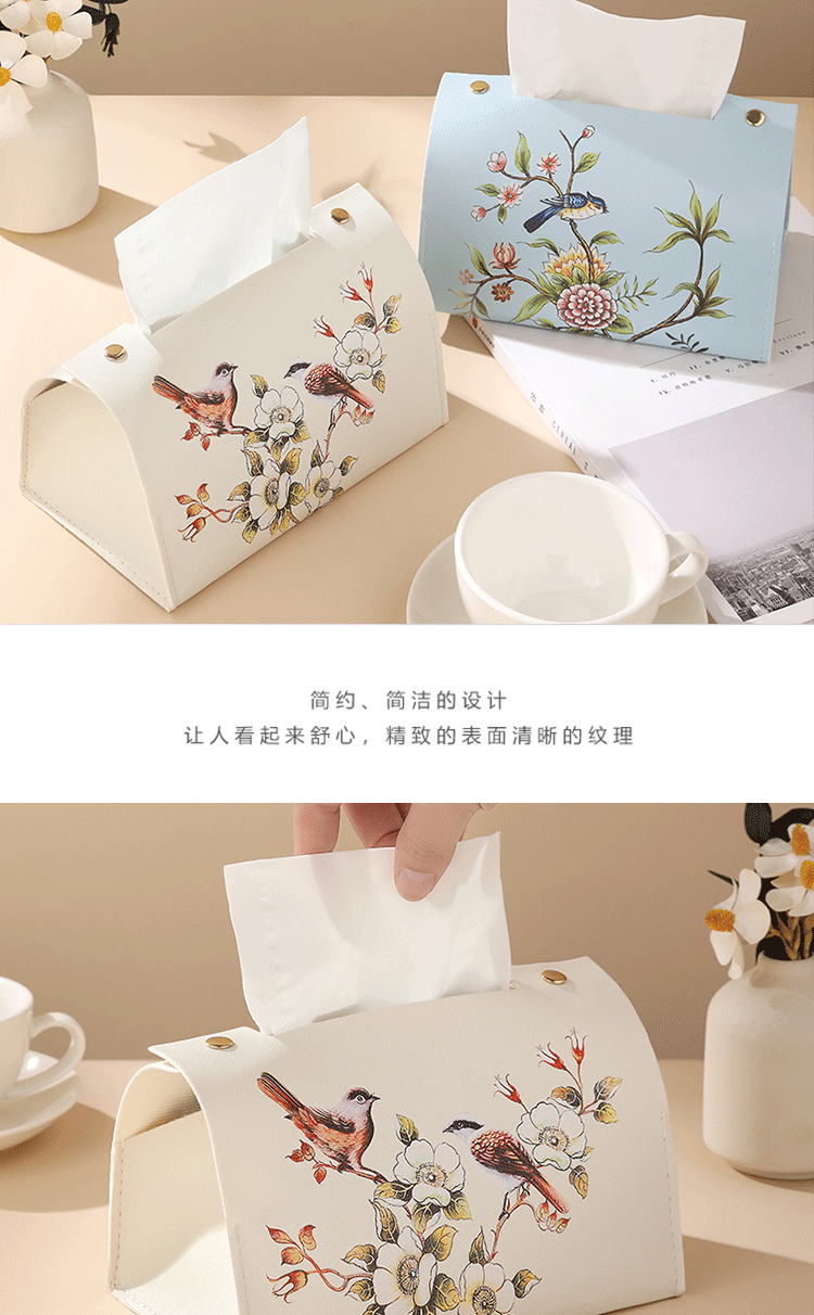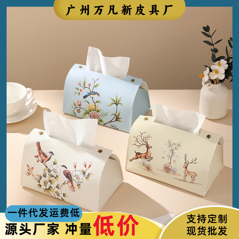 新中式花鸟皮革质抽纸盒纸袋客厅茶几办公室创意纸巾盒轻奢风高级