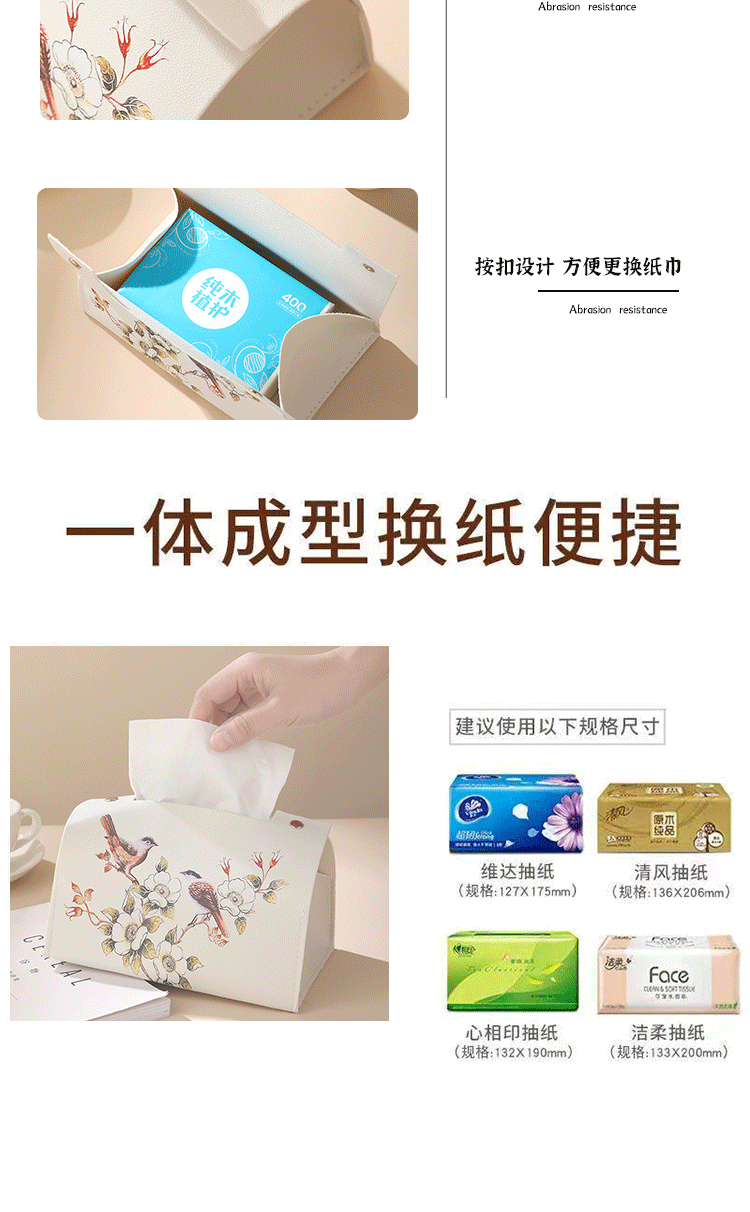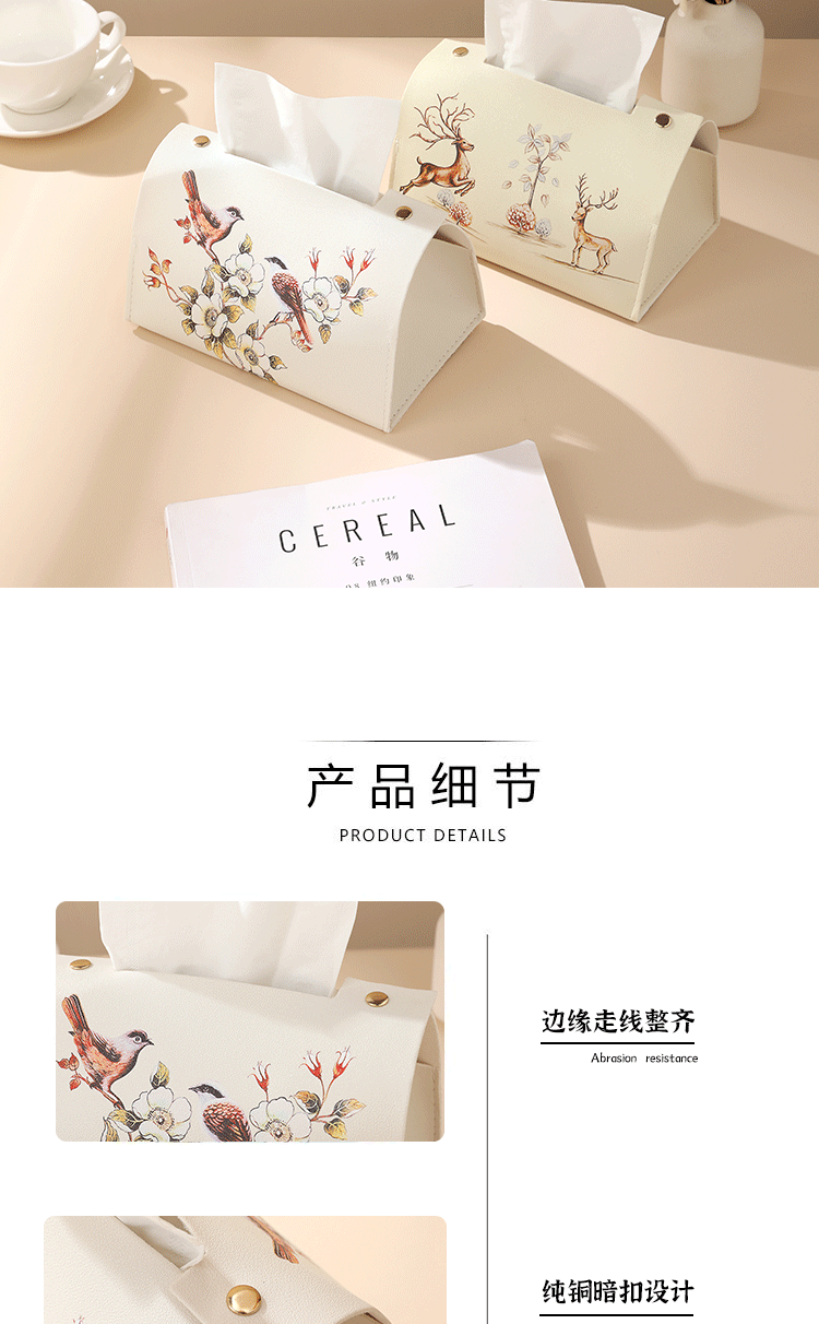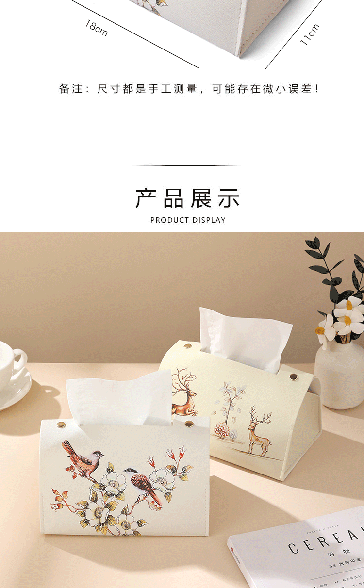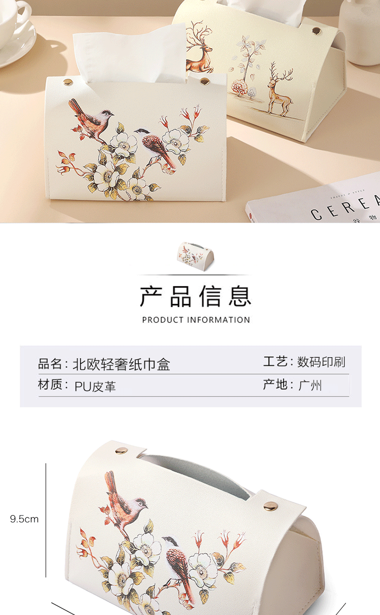 新中式花鸟皮革质抽纸盒纸袋客厅茶几办公室创意纸巾盒轻奢风高级