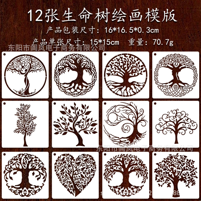 クロスボーダー起爆12pc生命樹絵画テンプレート木にスプレーガン自然植物の小さなヒキガエルを描くために使用