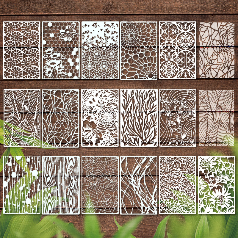 クロスボーダー Amazon 新しい 16 ピースライン植物テクスチャテンプレート DIY 石スプレー絵画曼荼羅中空ボード