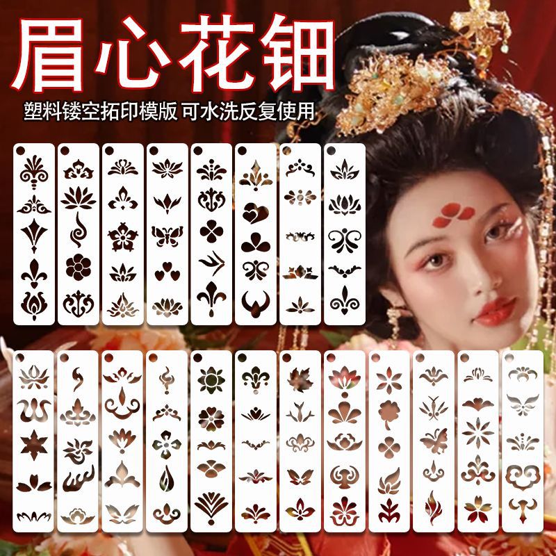 眉間花飾り防水透かし模様テンプレート漢服古装額飾り古風プリント妖精子供用タトゥー大人用彩絵