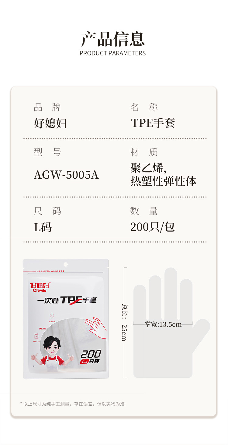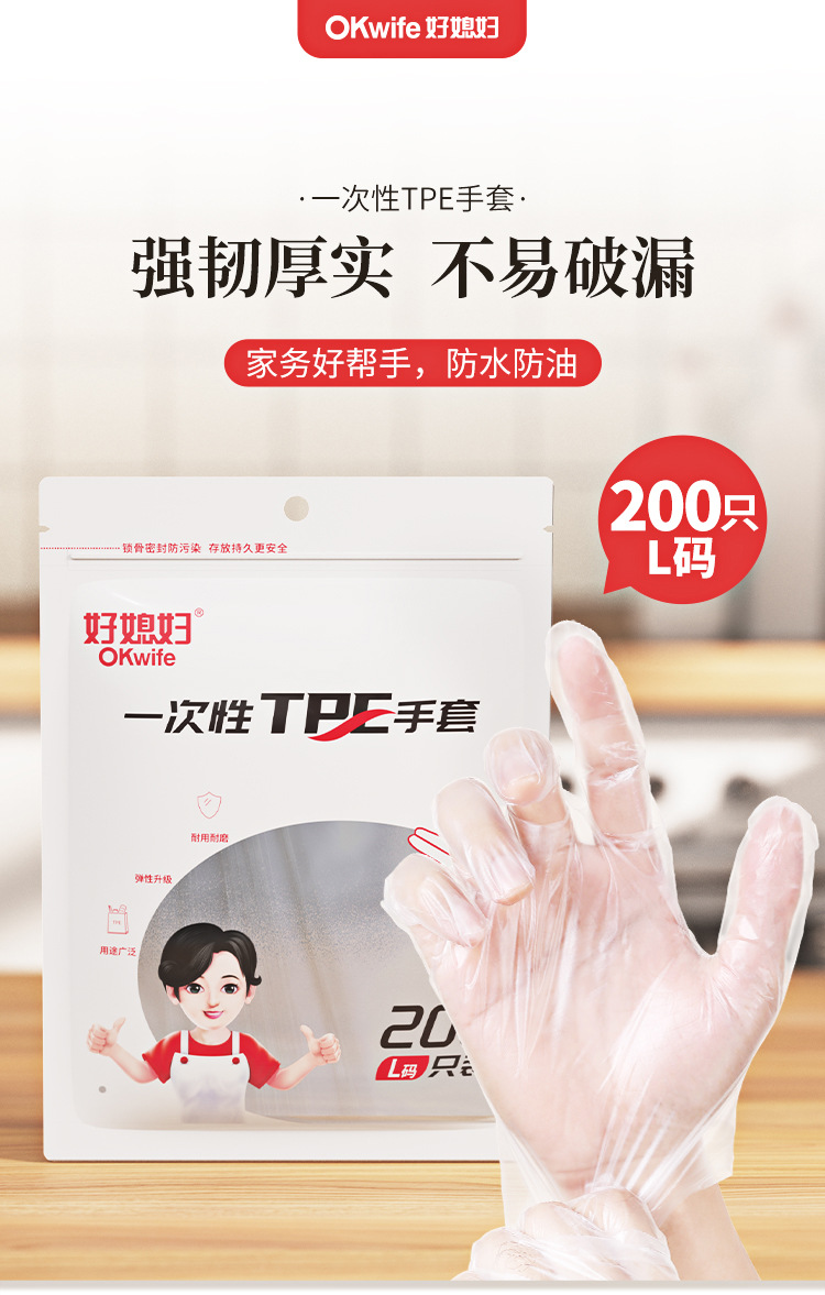 良い嫁の使い捨て手袋200匹は家庭用飲食店の台所で耐摩耗性のあるtpe食品級手袋を入れて油を防ぐ