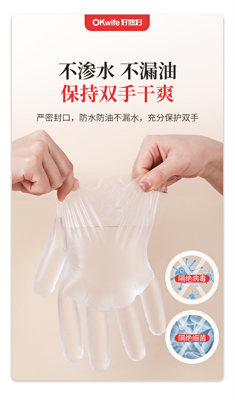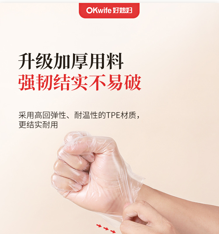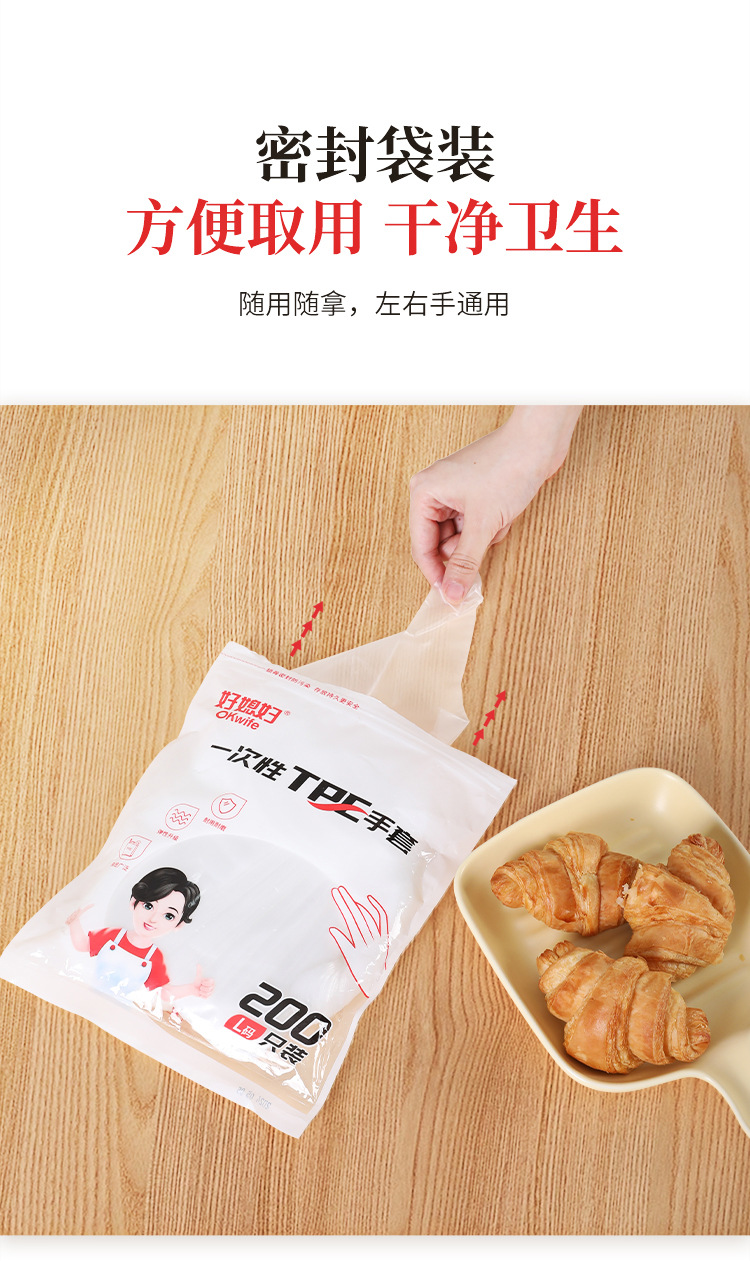 良い嫁の使い捨て手袋200本のケース食品級の厚いpe抽出式手袋キッチン家庭用手袋