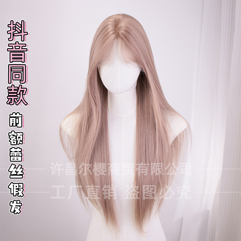ル桜【真夜中パリ】かつら夏の新作一字レースロングストレート全頭カバー自然丸顔韓国式