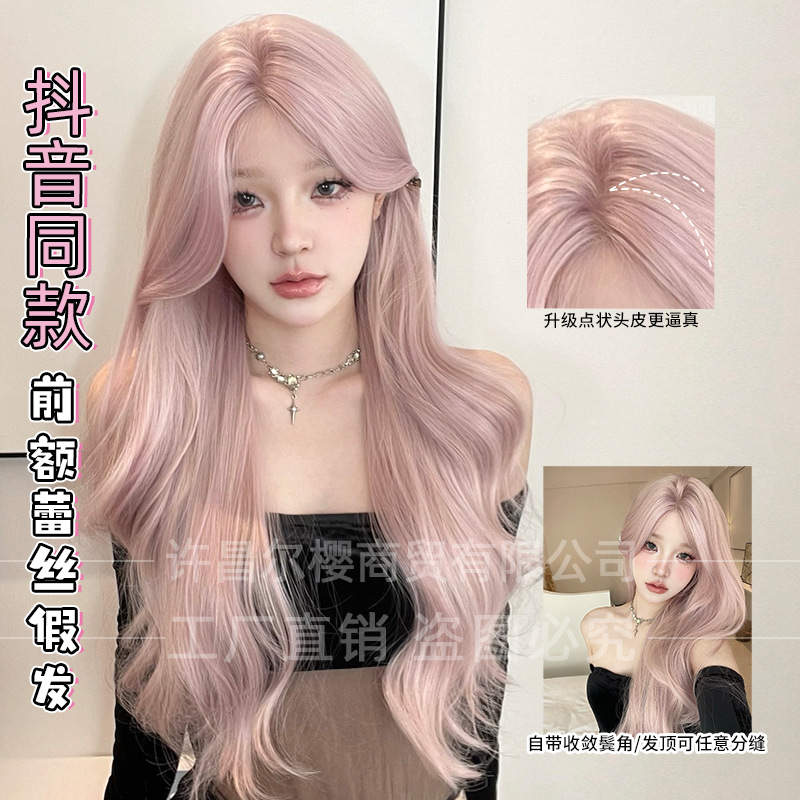 桜のかつらの女性ネットの赤い日の常長のカールの夏の新型の韓系の甘くて迫真的な劉海jkの全体のカバー