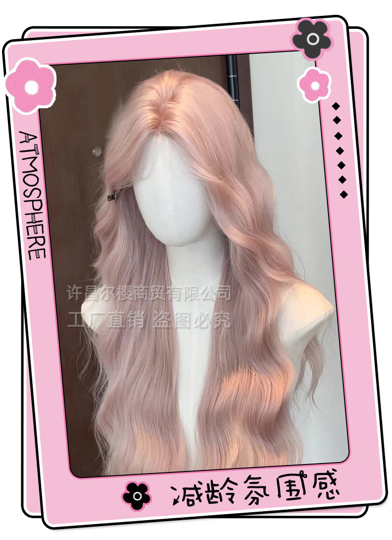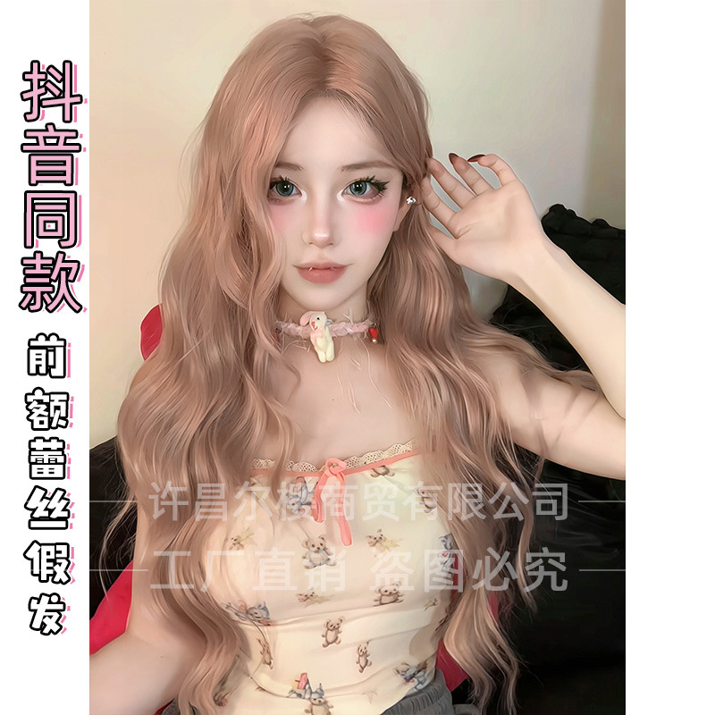 L桜かつら一字レース女性日常ネット赤金色系長巻lolita韓系かつら