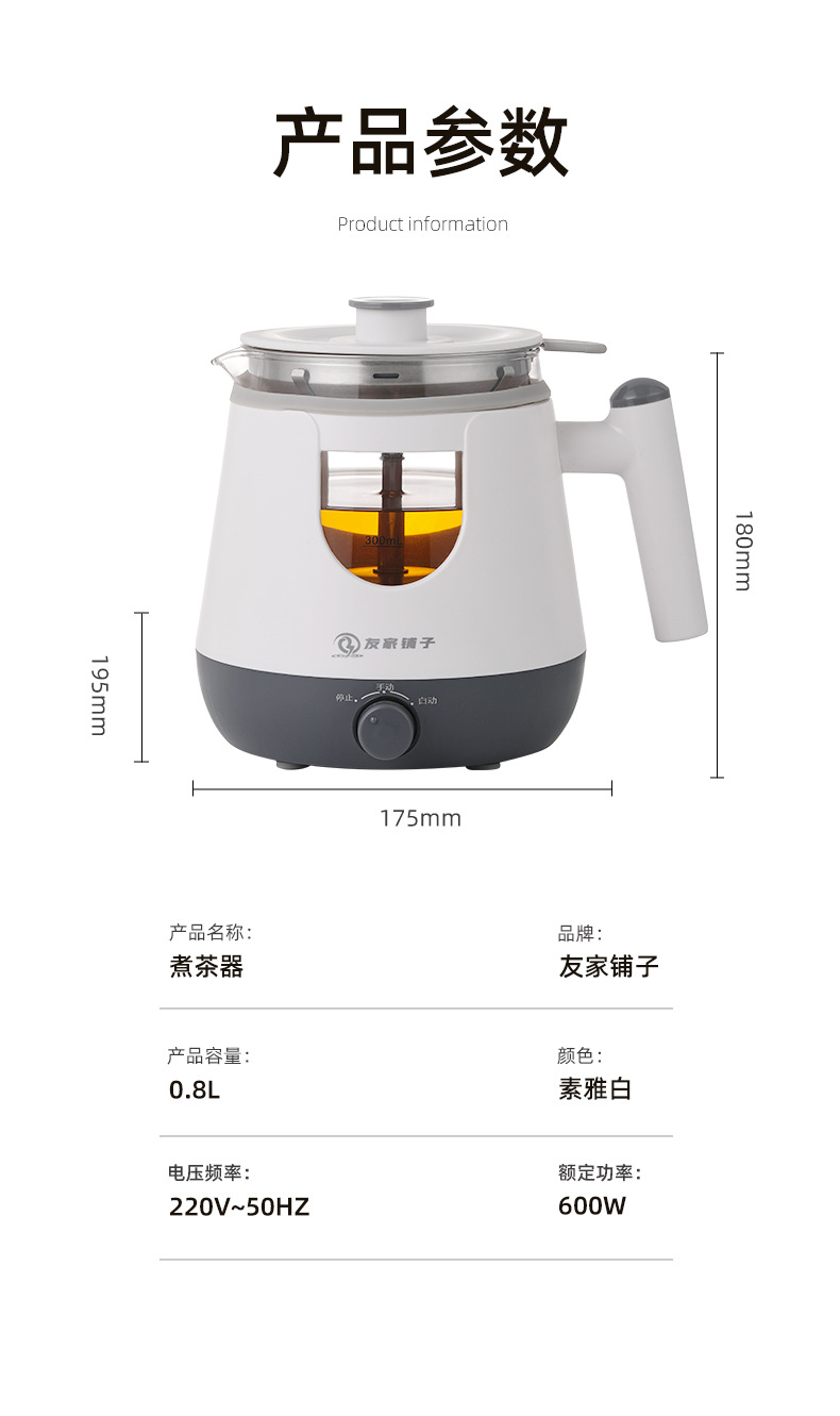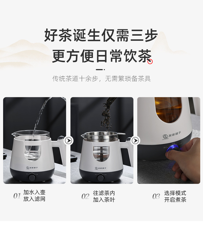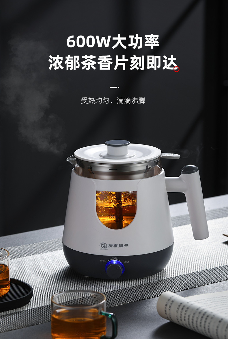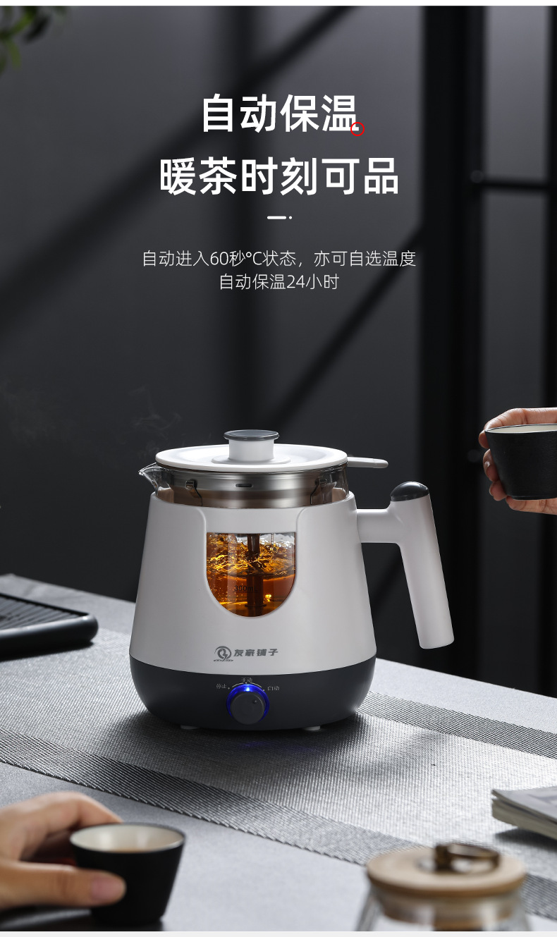 自動茶器家庭用蒸気煮ティーポットプーアル黒ティーポット多機能小型ガラス湯たんぽプレゼント