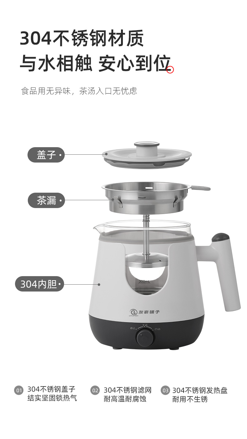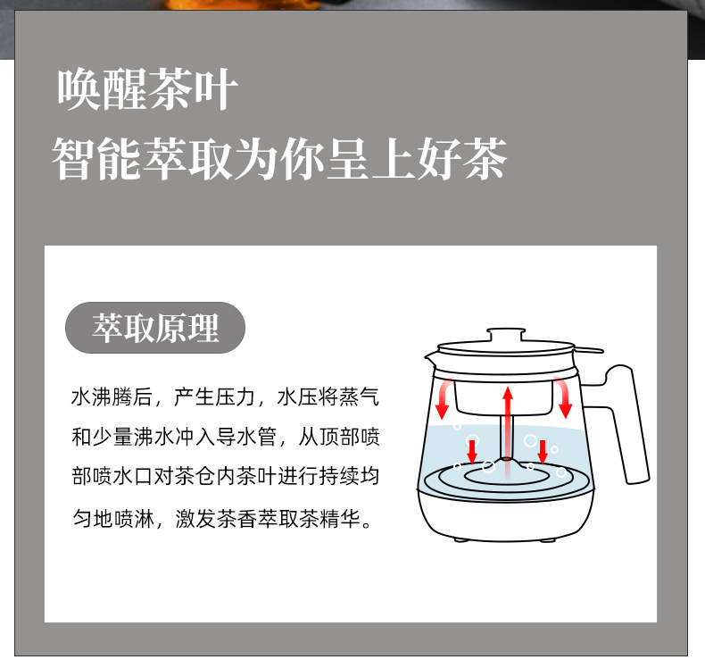 新型スプレー式茶器、黒茶・プーアール茶用蒸気式茶器、全自動ガラス製健康茶器、保温電気茶器