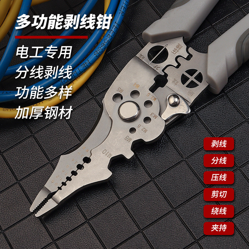 新型多機能ワイヤーストリッパー電気工鉗子専用ステンレス製の先端ケーブルカット光ファイバ線カット線圧線