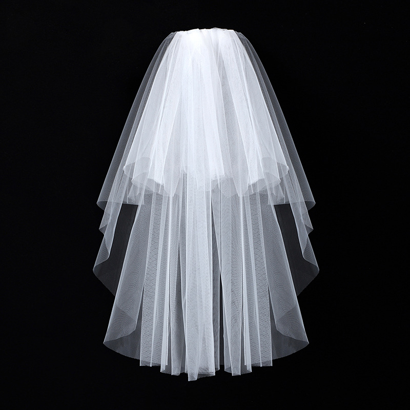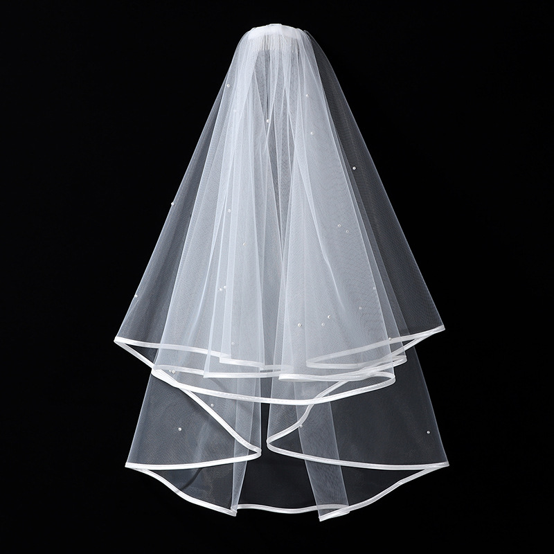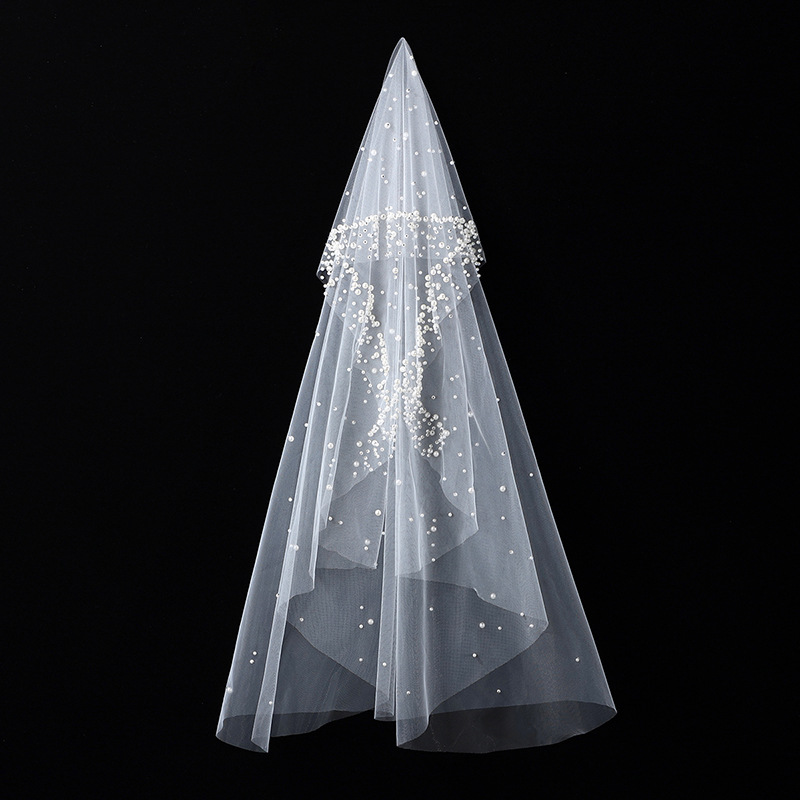 ベール花嫁メインウェディングドレスヘッドドレスヒジャブラウンドビーズ装飾フォレストスタイルレトロ妖精ハイエンド無地ガーゼ写真小道具