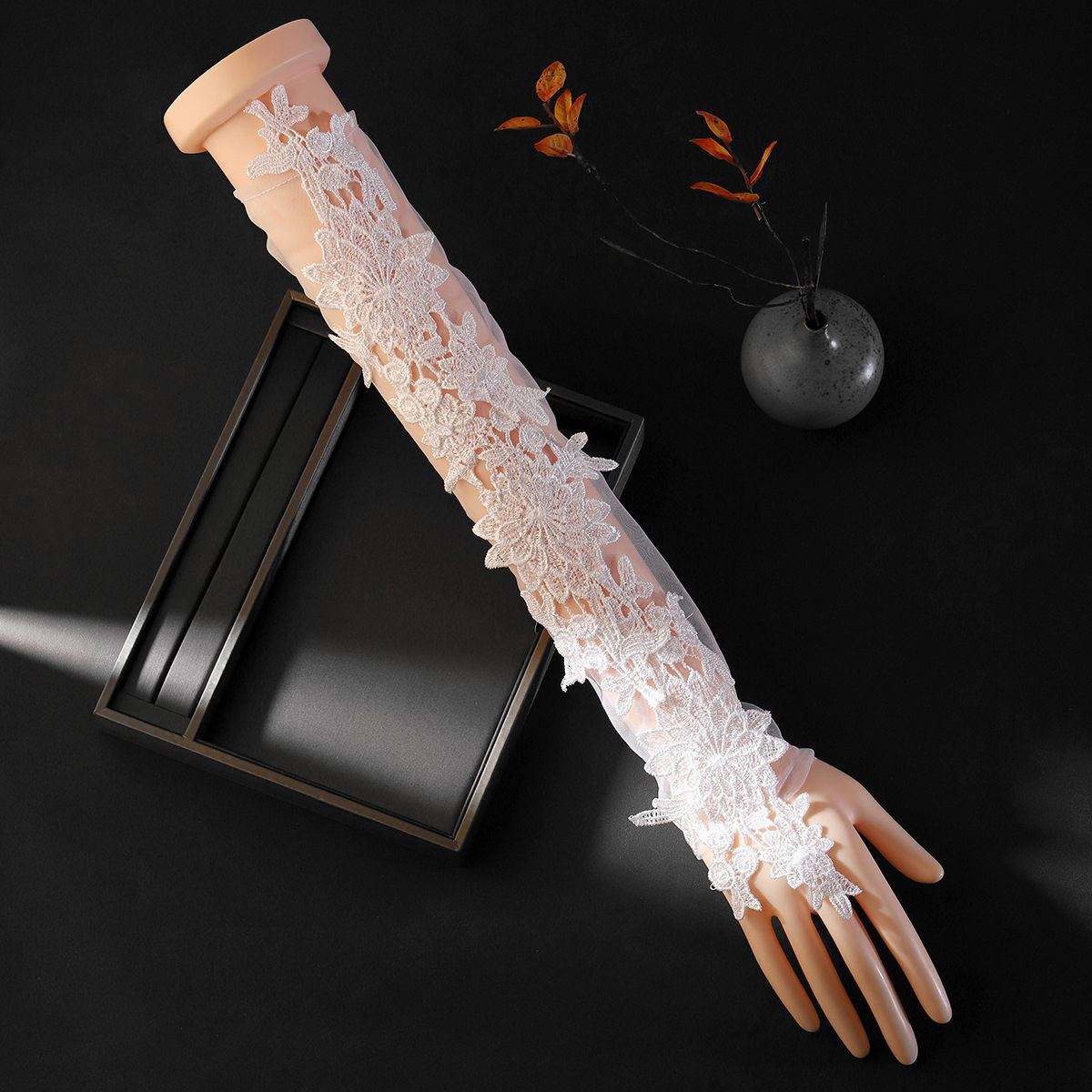 網糸レース無指手袋長型花卉花嫁手袋舞踏会結婚式パーティー服ウェディングドレス飾り袖カバー