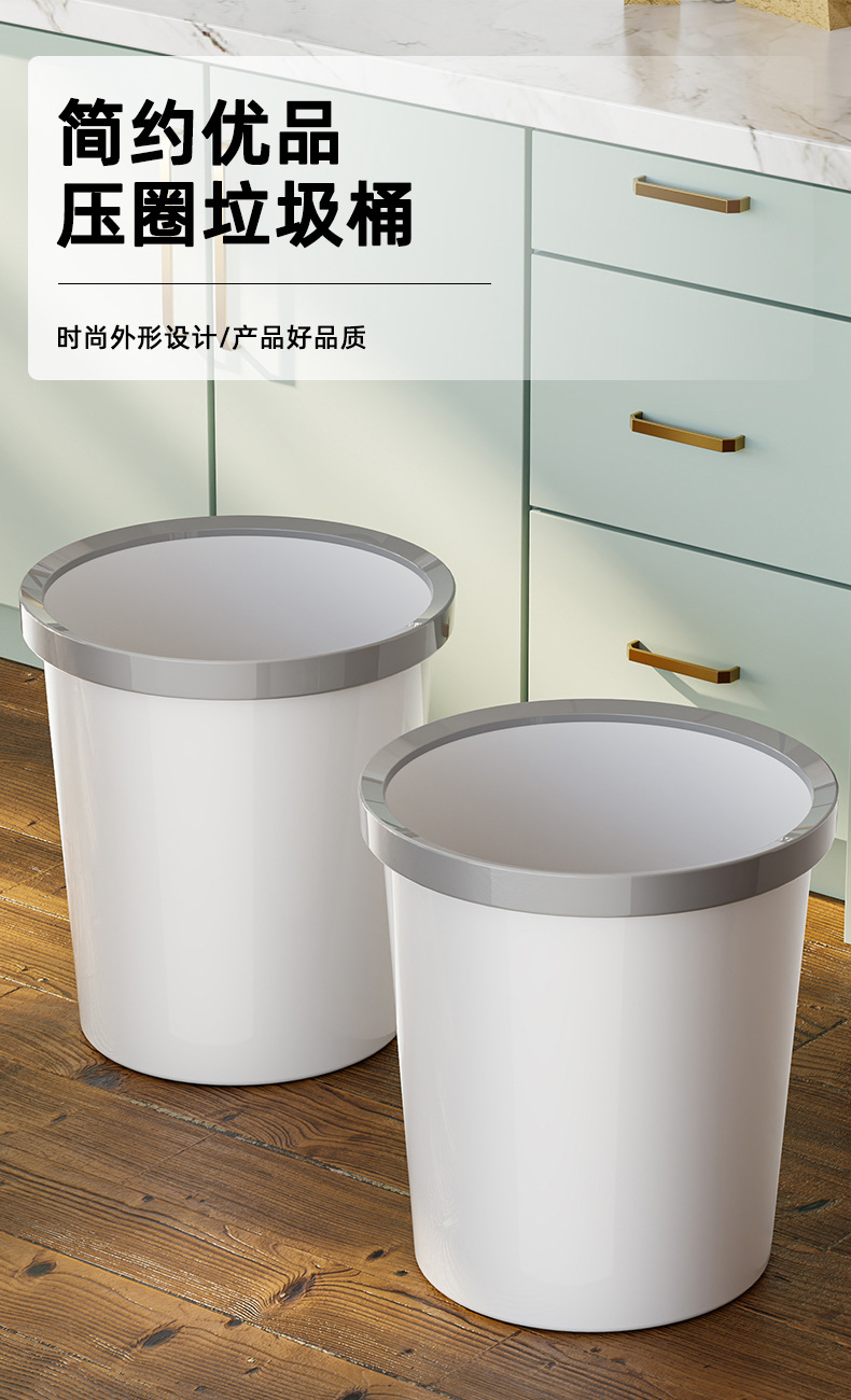 厚みのあるシンプルな大容量ゴミ箱、キッチン、リビング、寮、トイレ用、圧力リング付きペーパーバスケット、厚みがあり耐久性があります。
