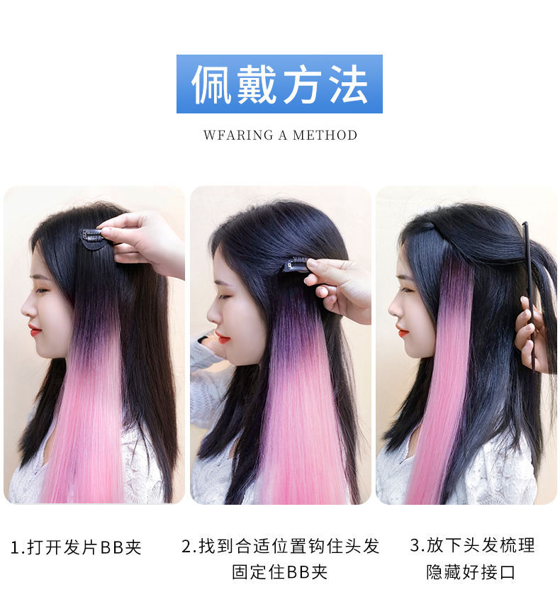 挂耳染发片长发挑染假发片一片式彩色假发条自然仿真隐形接发片