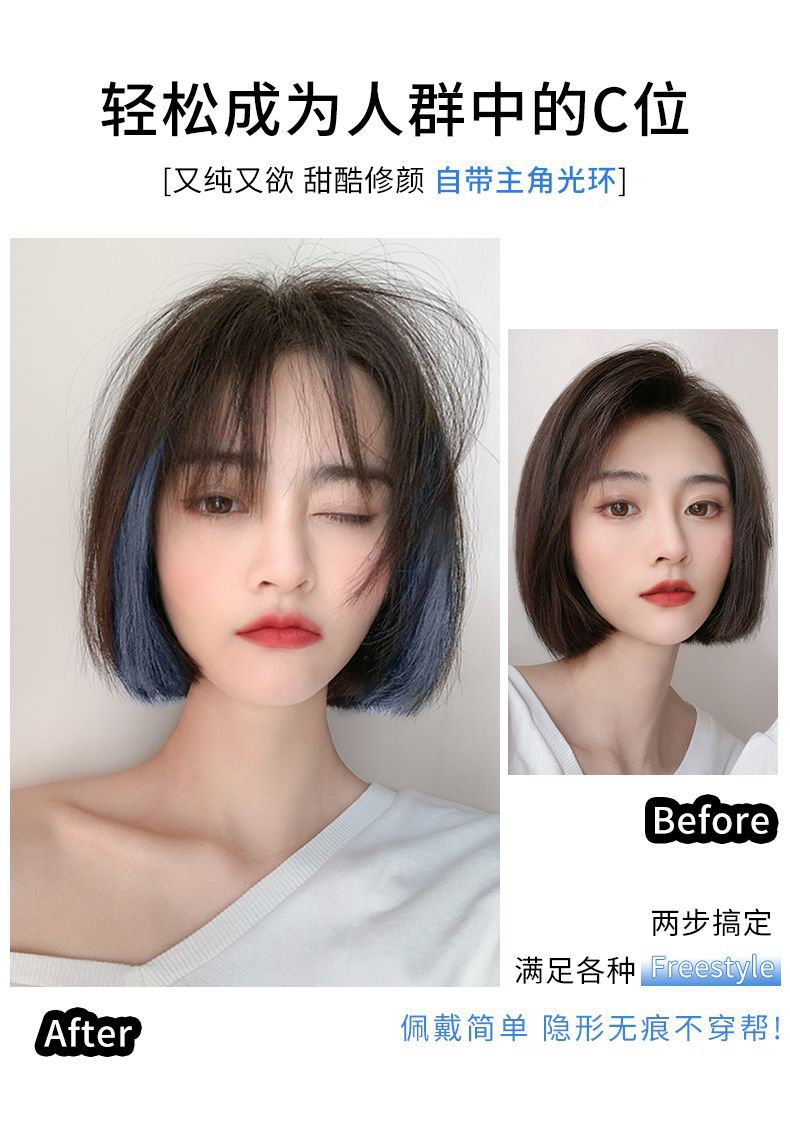 女性用ウィッグ、本物の髪、フレンチスタイルの前髪、サイドの髪なし、漫画風二次元、軽量で跡が残らない、顔の輪郭を整える、工場卸売