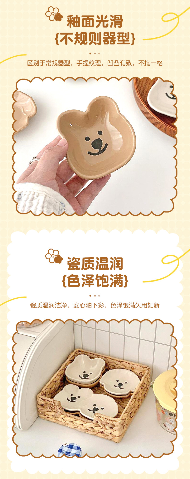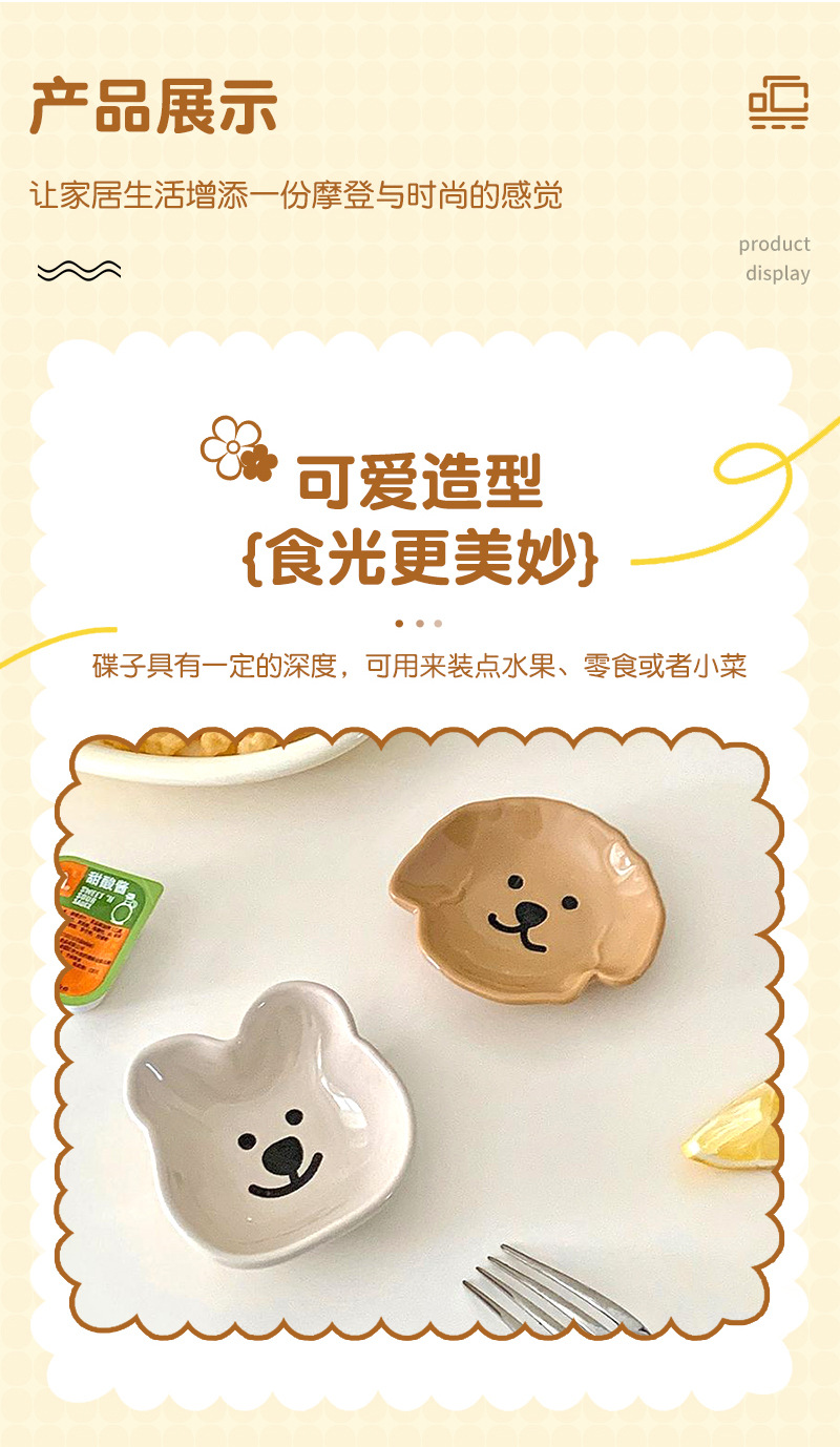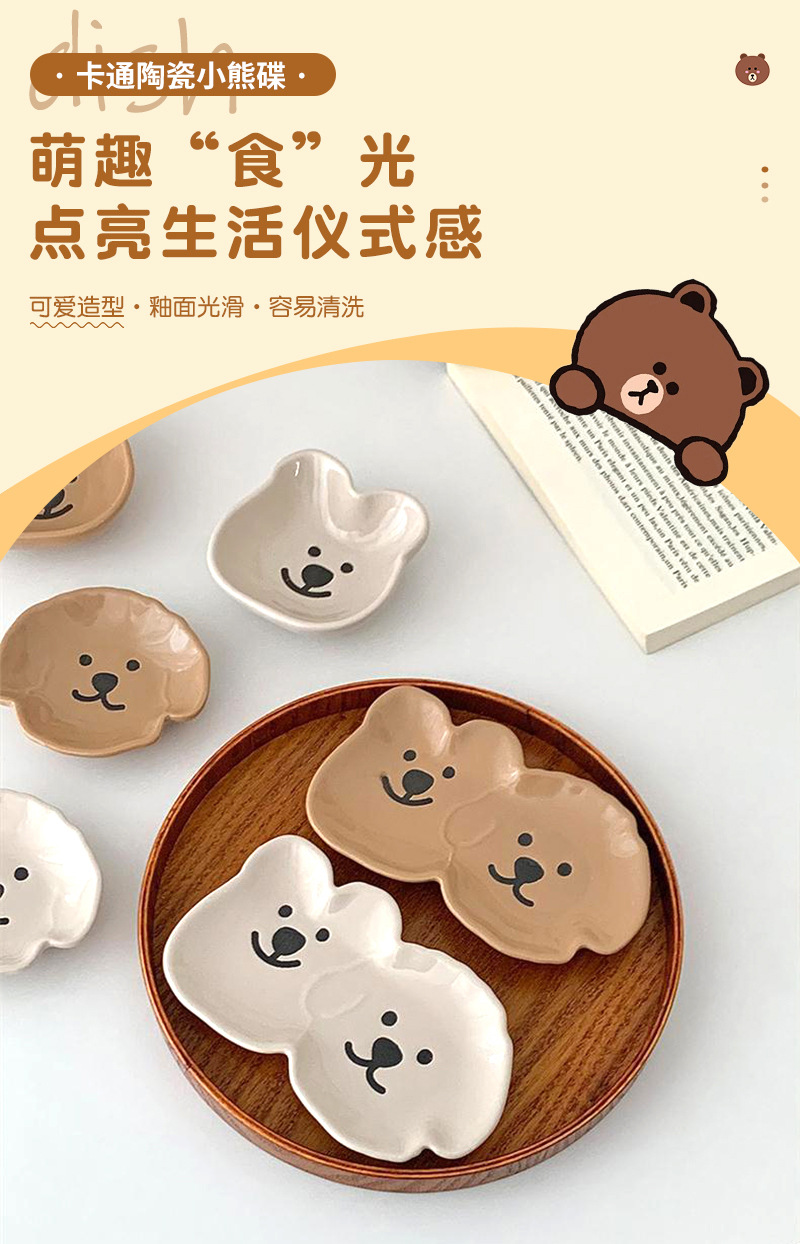 Ins風食器調味皿かわいいアニメ陶磁器熊皿家庭用ディップが骨皿の不規則なアイデアを吐く