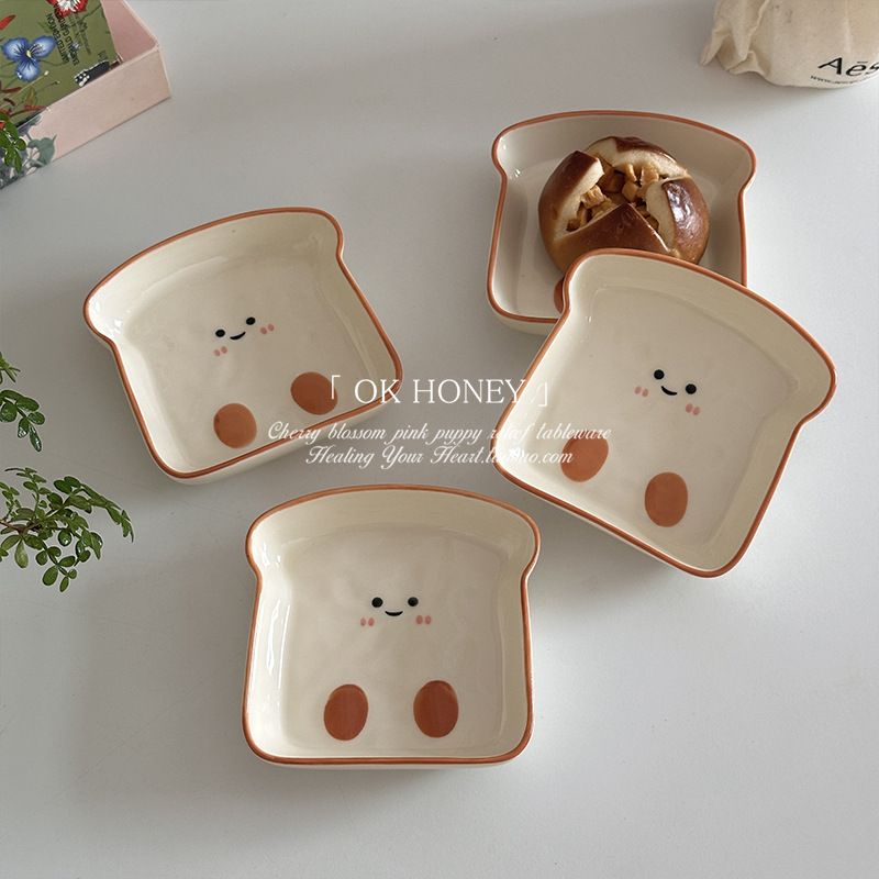 可爱吐司面包蘸料碟家用酱油醋料味碟陶瓷釉下彩火锅蘸酱小菜碟子