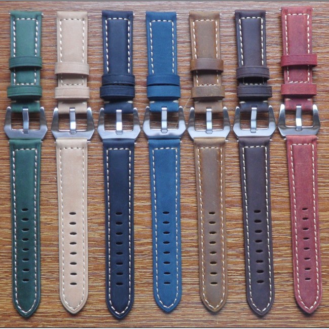 现货疯马皮复古油蜡皮变色头层牛皮表带真皮表带手表配件18-24mm