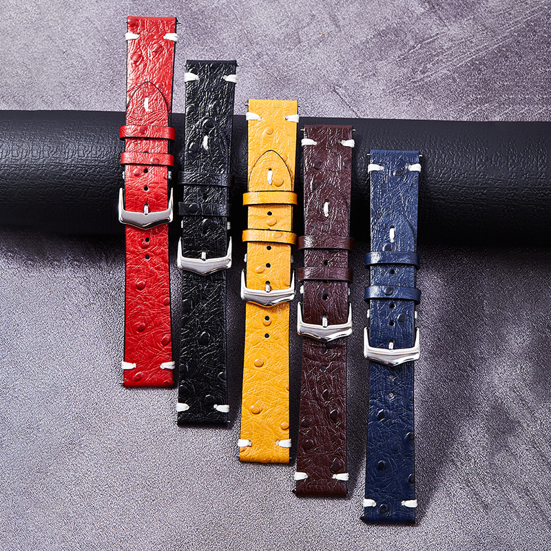 卸売在庫あり 新品 ダチョウ柄 本革時計バンド アクセサリー 手縫い Xiaomi Redmi 2/4/5世代対応