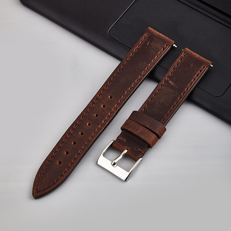 新型レトロ狂馬真皮バンド華為サムスン通用油蝋皮腕時計バンド中実ボタン18/20/22mm