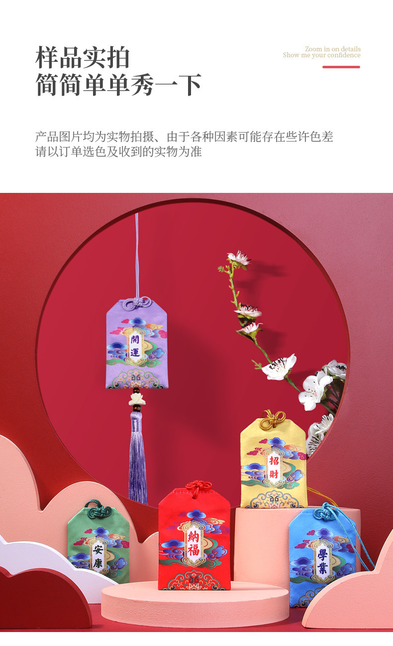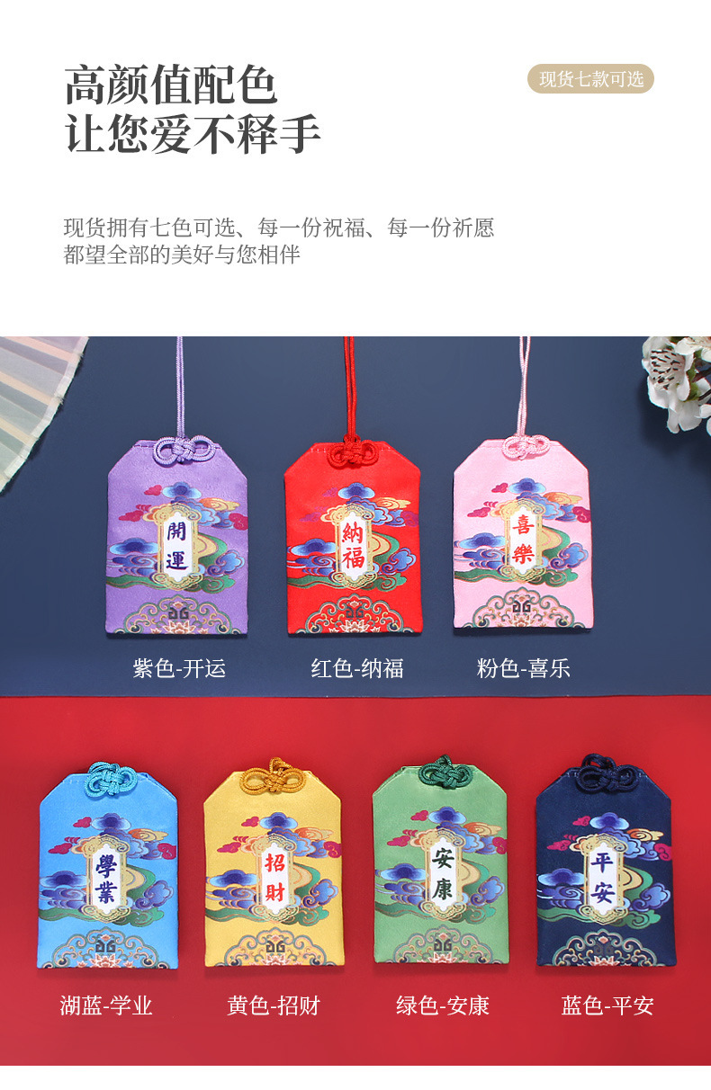 レッドナフ,黄色は富を引き寄せる,グリーンアンカン,青い平和,紫の幸運,ピンクの喜び,フーラン学業,赤いタッセルスタイル,黄色のタッセルスタイル,グリーンタッセルスタイル,ブルータッセルスタイル,紫のタッセルスタイル,ピンクのタッセルスタイル,レイクブルーのタッセルスタイル