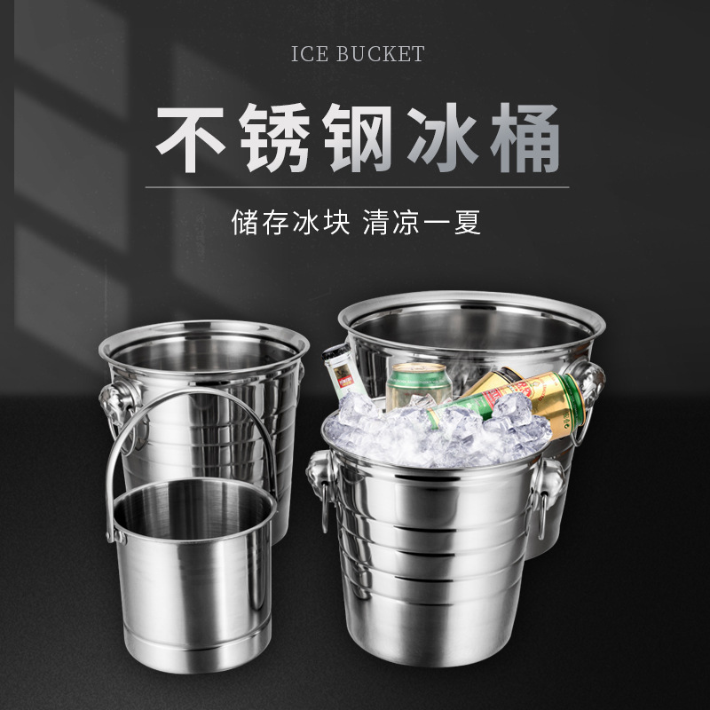大きいサイズの厚い手提げの2耳のステンレスの氷のバケツktvバーのシャンパンの氷のバケツのレストランのワインのビールの氷のバケツ