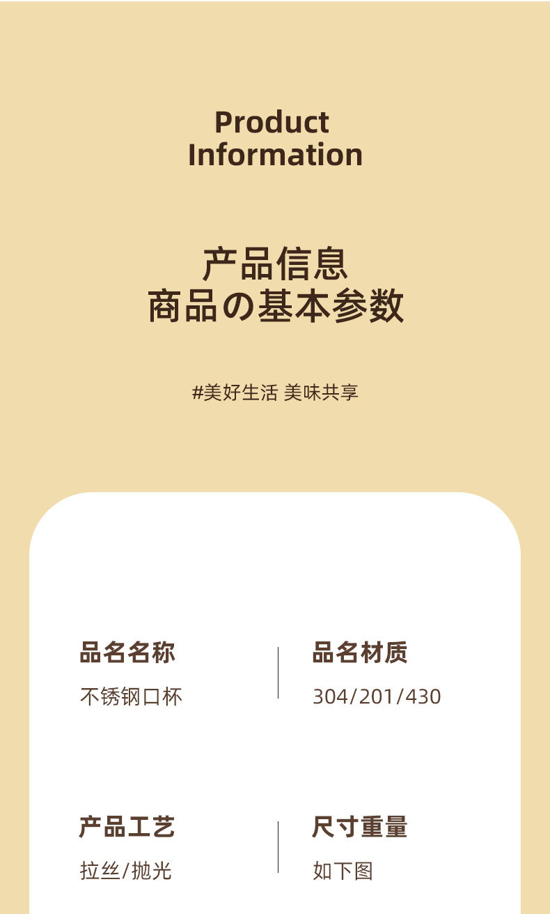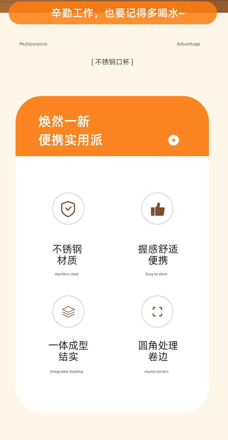 304ステンレスコップ幼稚園の学生用コップ多機能家庭用カップ屋外カップ牛乳カップ