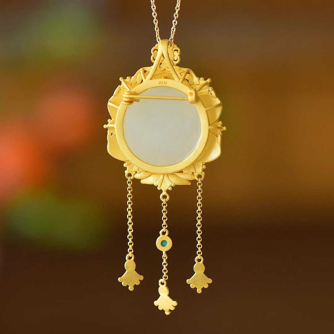 天然模造和田玉ブレスレット女金帛玉青玉緑松石蓮蓬メッキ純銀レトロ宮廷藍蓮