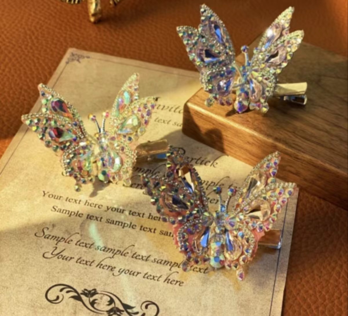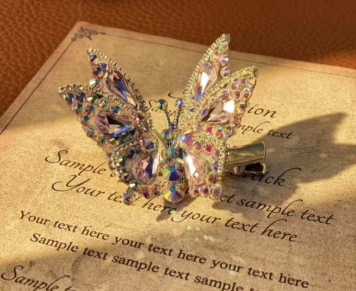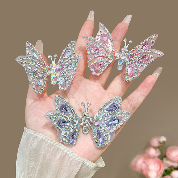 2024新作能动プリンセス蝶ヘアクリップファンタジーカラークリスタル女の子ヘア女の子