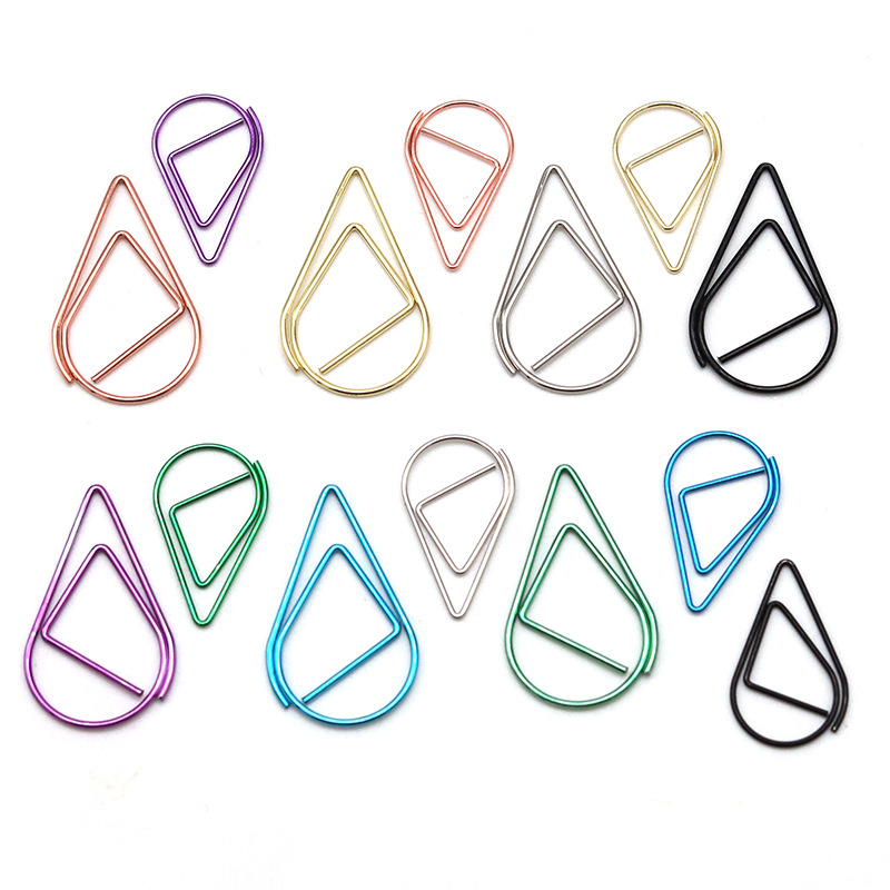 水滴の形のクリップの金属のブックマークのアイデアのクリップの財務の手帳の万字は書類の分類のクリップを挟みます。